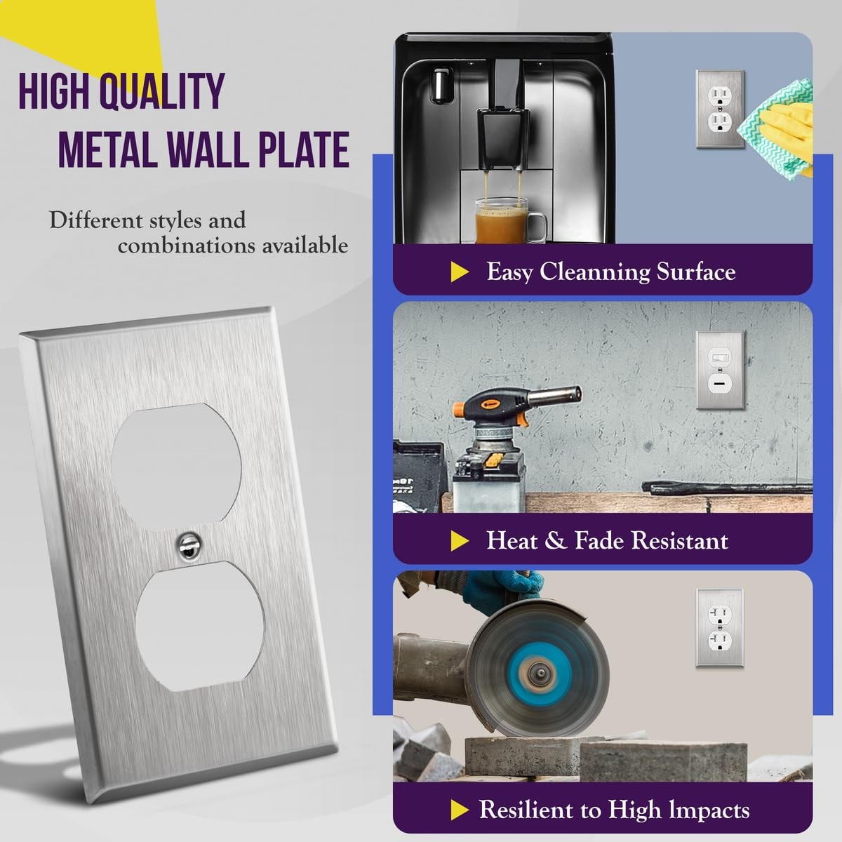 Duplex Receptacle Metal Wall Plate, Stainless Steel Outlet Cover, Corrosion Made of 430 stainless steel and provides high-impact resistance against heavy force. Limit access to wiring due to wall plate breakage associated with nylon and plastic covers Corrosion resistant material helps extend wall plate life in extreme environments. Non-combustible and heat resistant to temperatures over 100 degrees Easy replacement of any wall plate of the same configuration. Dimensions 4. 50" Height x 2. 76" Length Elegant smooth brushed finish and contoured edges enhance appearance while maintaining functionality Compatible with 61580 series; Includes screws to match wall plate; UL listed Shipping We offer FREE shipping on all orders! We ship within Three business days of payment, usually sooner. We use a selection of shipping services such as UPS, FedEx, USPS etc. We only ship to the lower 48 states, no APO/FPO addresses or PO Boxes allowed. Local pickups and combined shipping options are not provided at this time. Return You can return a product for up to 30 days from the date you purchased it. Any product you return must be in the same condition you received it and in the original packaging. Please keep the receipt. Payment We accept payment by any of the following methods: PayPal Please pay as soon as possible after winning an auction, as that will allow us to post your item to you sooner! Feedback Customer satisfaction is very important to us. If you have any problem with your order, please contact us and we will do our best to make you satisfied. Contact Us If you have any queries, please contact us via ebay. We usually respond within 24 hours on weekdays. Please visit our eBay store to check out other items for sale! Thank you for shopping at our store.