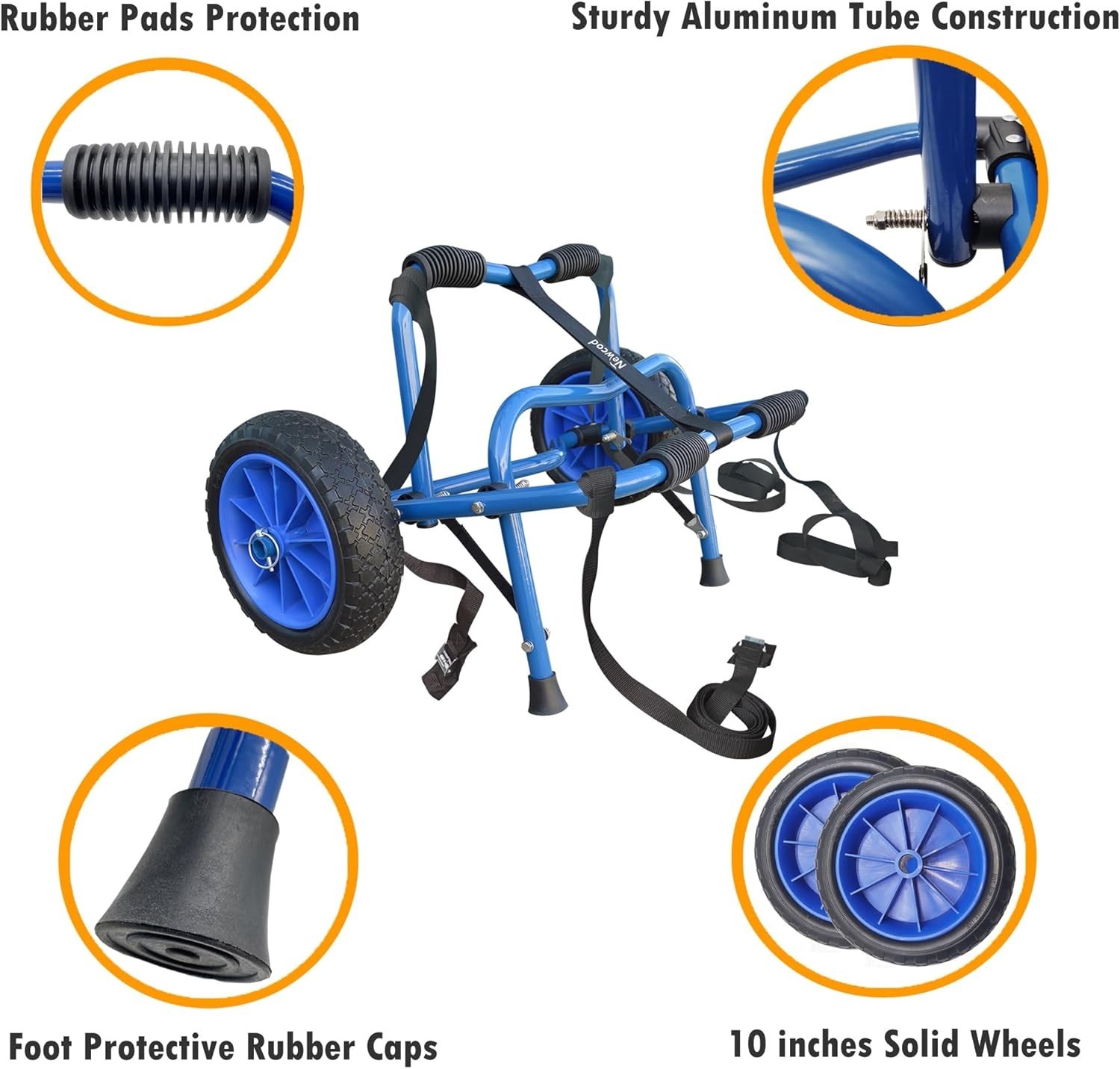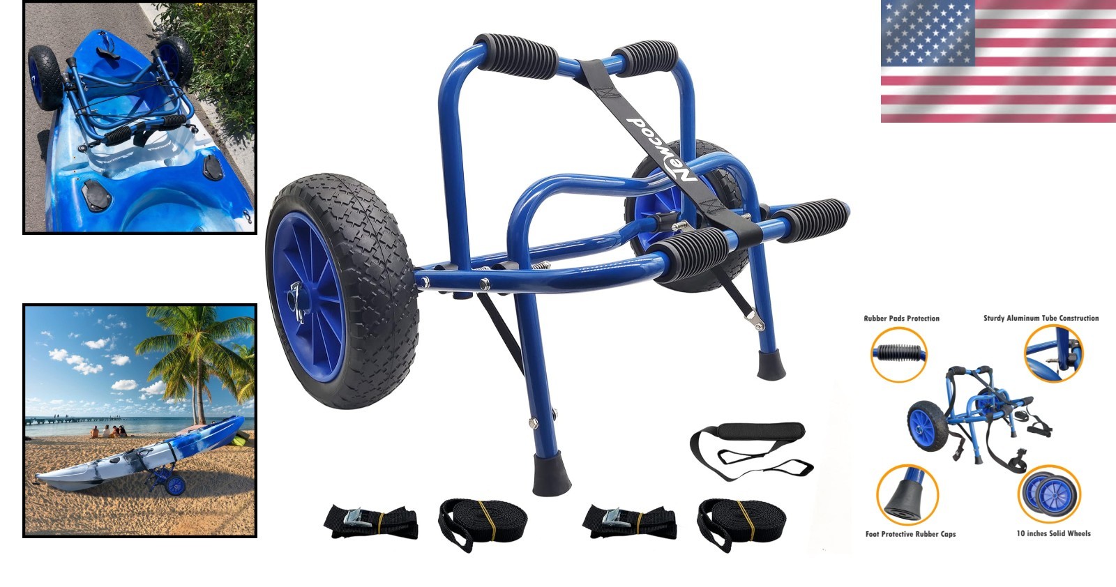 This kayak cart is a game-changer! The 10-inch rubber wheels roll smoothly over rough terrain, making transport effortless. Assembly was a breeze—no tools needed—and the straps hold my kayak securely. Perfect for SUP and canoe too, as long as they're under 31" wide. Super sturdy and well worth it for hassle-free trips to the water!