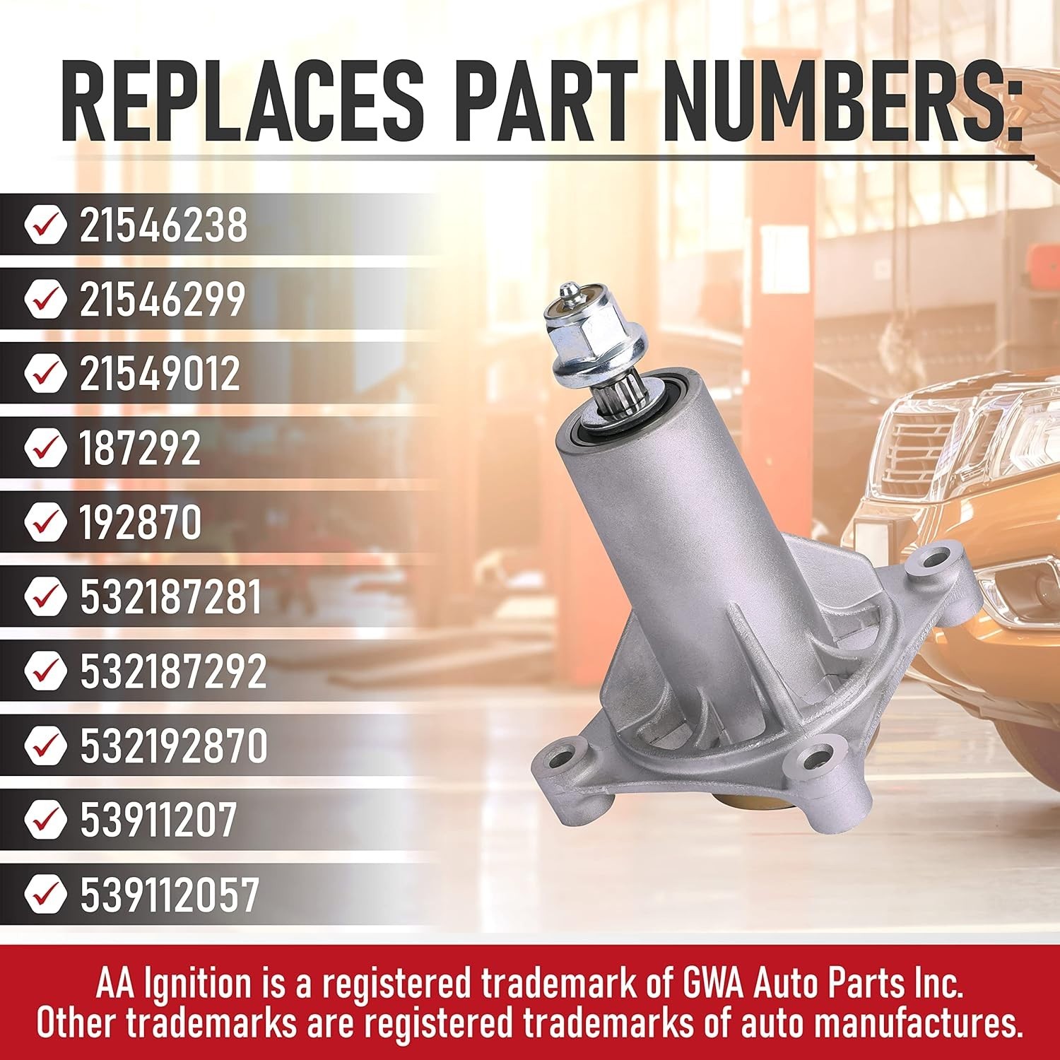 Item Diameter:54 inOperation Mode:ManualType:SpindleVoltage:12 VStyle:PushPackage Dimensions:7.64 X 5.08 X 5.08 InchesItem Weight:3.56 lbNumber in Pack:1Color:SilverPower Source:GasBrand:UnbrandedCutting Width:54 InchesMaximum Adjustable Cutting Height:7.5 Inchesgtin13:Does Not ApplyHorsepower:1 HPUPC:Does Not ApplyMaterial:MetalCompatible Model:For Husqvarna YTH24K48, For AYP, For Craftsman, For Dixon, For Husqvarna, For McCulloch, For Poulan
