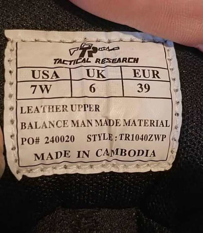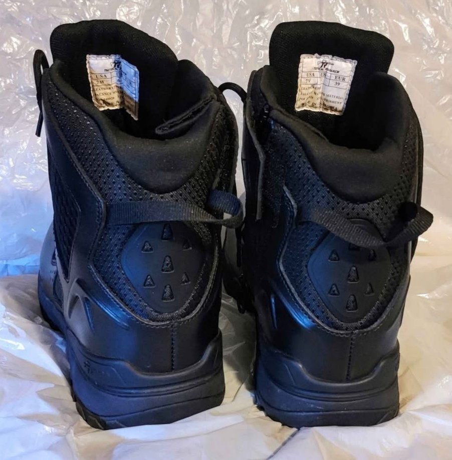 Crafted for durability and designed with a no-nonsense aesthetic, these Tactical Research combat boots are a seamless blend of functionality and style. The robust leather upper provides a tough exterior that's equally at home in the backwoods as it is on the city streets. A size 7W, they offer a comfortable fit for those with wider feet, ensuring a secure and supportive experience with every step. The boots feature a reliable rubber outsole, perfect for a variety of terrains, while the classic black color maintains a professional edge. Made in China, these boots are built to meet the demands of everyday wear while remaining steadfastly true to their tactical roots. Whether for work or play, these boots are tailored for those who appreciate quality and performance.