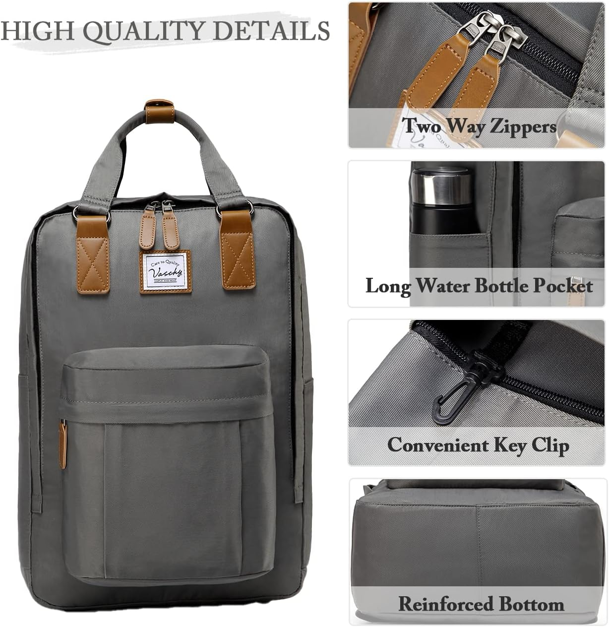 Absolutely love this backpack! The water-resistant fabric is a lifesaver, and the vintage design looks sleek. Super spacious with comfy straps and handy top handles—perfect for school, travel, or work. Dark gray color stays clean, and the quality is solid. Worth every penny!