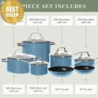 17PC Ceramic Nonstick Cookware Set PFAS-Free Pots & Pans Oven Safe to 600F Gray