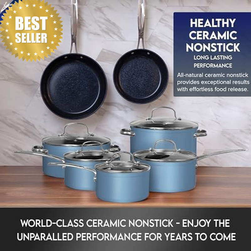 Fa lconbay_US Duralon Blue Ceramic Nonstick Cookware Set PFAS-Free Induction Oven Safe FEATURES βοΈ Healthy Duralon Blue Ceramic Nonstick Cookware Set β PFAS-Free, Scratch-Resistant, Oven & Dishwasher Safe, Induction Ready πͺΆ Product Description Cook like a pro with the Healthy Duralon Blue Ceramic Nonstick Cookware Set β where sleek design meets unbeatable performance. Made from premium forged materials, this lightweight yet tough cookware is perfect for daily use in any American kitchen, from weeknight dinners to weekend feasts. π What makes it shine? Its Generation 10 (G10) Duralon Blue ceramic coating, infused with diamond-hard strength, delivers long-lasting nonstick performance without the harmful chemicals found in traditional cookware. Itβs completely PFAS-free, heats up evenly in seconds, and handles everything from stovetop to oven β safely and stylishly. Plus, the tempered glass lids, induction-ready bases, and stay-cool handles bring confidence to every cooking session. Whether youβre searing, simmering, or sautΓ©ing β this setβs got your back. π©π³π₯ π Specifications β’ Material: Premium Forged Aluminum with Duralon G10 Blue Ceramic Coating β’ Coating Type: Diamond-Infused Gen10 Duralon Blue, PFAS-free β’ Hardness Rating: 9H (next to diamond at 10H) β’ Compatibility: Induction, Gas, Electric, Ceramic, Halogen β’ Oven Safe: Yes β’ Dishwasher Safe: Yes β’ Color: Vibrant Blue β’ Lids: Tempered Glass β’ Handles: Stay-Cool Ergonomic Grip π§ Key Features β Premium Forged Construction β Combines strength and lightweight handling for an elevated cooking experience. β Diamond-Infused Nonstick Coating β Gen10 Duralon Blue delivers ultra-durable nonstick performance without PFAS, PTFE, or PFOA. β 9H Surface Hardness β Scratch-resistant and highly durable, second only to diamond. β Fast & Even Heating β Reinforced with anti-warp stainless steel bases for superior heat distribution. β Induction Ready β Perfect for all cooktops, including induction. β Safe at High Temps β Wonβt release harmful fumes even under high-heat cooking. β Effortless Cleanup β Dishwasher-safe and nonstick for easy cleaning. π Why Youβll Love It βοΈ Cook worry-free β free of harmful chemicals like PFAS, PTFE, and lead. βοΈ Enjoy fast, even heating for perfect meals every time. βοΈ Handles stay cool to the touch β safe and comfortable to grip. βοΈ Built tough for everyday cooking with a beautiful blue finish that stands out. βοΈ Versatile performance from stovetop to oven to dishwasher. π¦ Whatβs in the Box? β’ Complete Set of Forged Nonstick Cookware (exact pieces vary by listing) β’ Tempered Glass Lids for Each Pan β’ Stay-Cool Handles Built-In β’ User Care Guide π‘ Tips for Use β’ Avoid using metal utensils to preserve the nonstick coating. β’ Always allow cookware to cool before washing. β’ Store with soft pan protectors or hang to prevent surface contact. β’ For best results, handwashing can extend the lifespan of the ceramic coating. π¦ Fastest Shipping Guaranteed Unlike other stores that offer cheaper products but come with delivery delays of up to 30 days, we take pride in offering fast and reliable shipping. Based in the American, we guarantee that your order will be delivered within 3β8 days, with no unexpected delays (unless under rare circumstances). When you shop with us, youβre choosing speed and satisfaction. π¦π β FAQs Q1: Is the coating truly free of harmful chemicals? π Yes! Itβs tested by TΓV Rheinland and confirmed free from 106 known PFAS substances, plus PTFE, PFOA, lead, and cadmium. Q2: Can I use it on an induction cooktop? π Absolutely! Each piece has an anti-warp stainless steel plate that makes it fully induction-compatible. Q3: Is it safe to put in the dishwasher? π Yes β itβs dishwasher safe, though handwashing is recommended for extended nonstick life. Q4: Will the nonstick coating last? π With a 9H hardness rating and proper care, it resists scratches and stays nonstick longer than standard cookware. Q5: Are the handles heat-resistant? π Yes β stay-cool ergonomic handles keep you safe and comfortable while cooking. Cookware Set Is Compatible With induction, oven Item model number 31427 Closure Material Stainless Steel Size 12pc Cookware Set Number of Pieces 12 Color Cozy Blue Included Components 1.5Qt Saucepan with Lid, 2Qt Saucepan with Lid, 3Qt Saucepan with Lid, 5Qt Stock Pot with Lid, 8Qt Stock Pot with Lid Material Aluminum, Ceramic, Glass, Stainless Steel Style Cookware Set Is Dishwasher Safe Yes Item Weight 25.9 pounds Is Oven Safe Yes Handle Material Stainless Steel With Lid Yes Is Cookware Induction Compatible Yes Utensil Compatibility Manual Only Special Feature Induction Stovetop Compatible Package Dimensions 22.5 x 13.5 x 12.25 inches Material Type Free PFAS Free 13.5 inches x 22.5 inches x 12.25 inches. Weight: 25.9 lb PAYMENT We accept all payments via Ebay using Credit Cards , Affrim, PAYPAL , Apple Pay and many others SHIPPING We are always working hard to ensure your package arrives as soon as possible. Please understand that some factors like weather, high postal traffic, and the performance of shipping companies are outside of our control. DELIVERY & RETURN POLICY We offer a 30-Day Return Policy on items in which you are not completely satisfied with. You have the option of a full-refund.