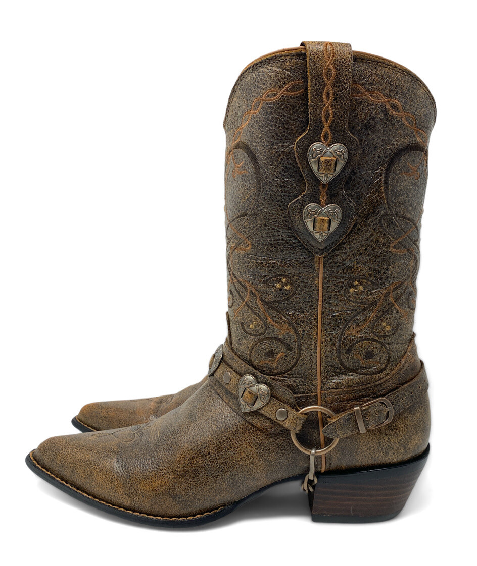 Up for purchase is this pair of Durango Crush Heartbreaker Harness Heart Concho Brown Leather Cowboy Boots RD4155 Women’s Size 10M. Boots are in overall very good pre-owned condition with light cosmetic wear. Images are part of the item description so please see all images for more details. If you have any questions please let us know. Thank you