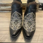 Durango ankle booty boots amazing detail show stoppers for sure. Good quality leather size 6.5 the hill is 3 inches measured from the back of the hill to the bottom. style is full grain leather With a belt strap with metal detailing and detail stitching inside upper soft microfiber lining
