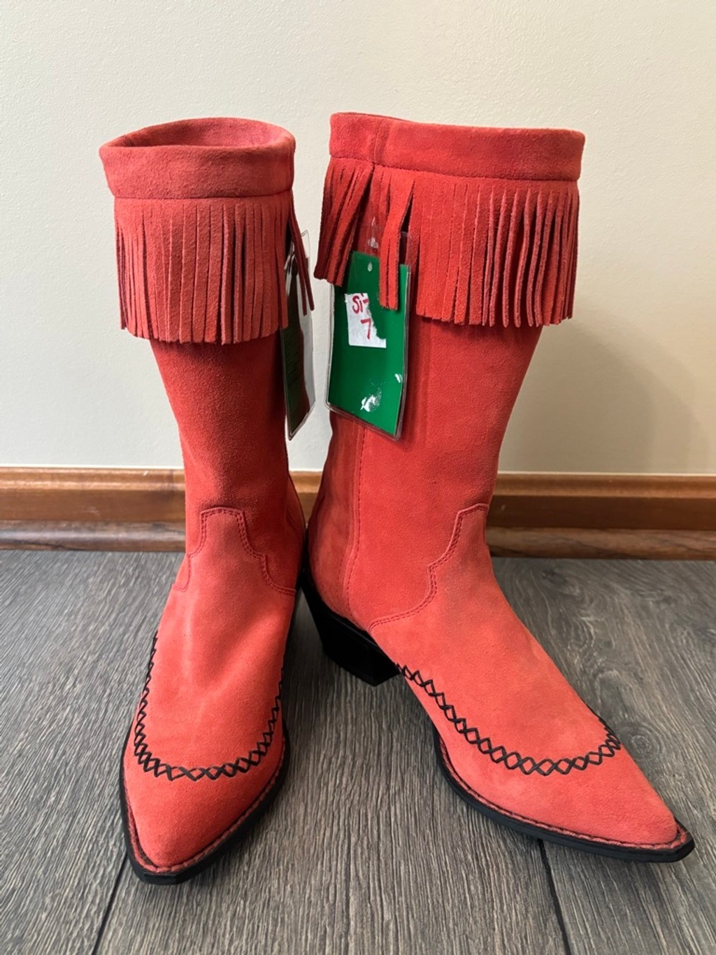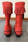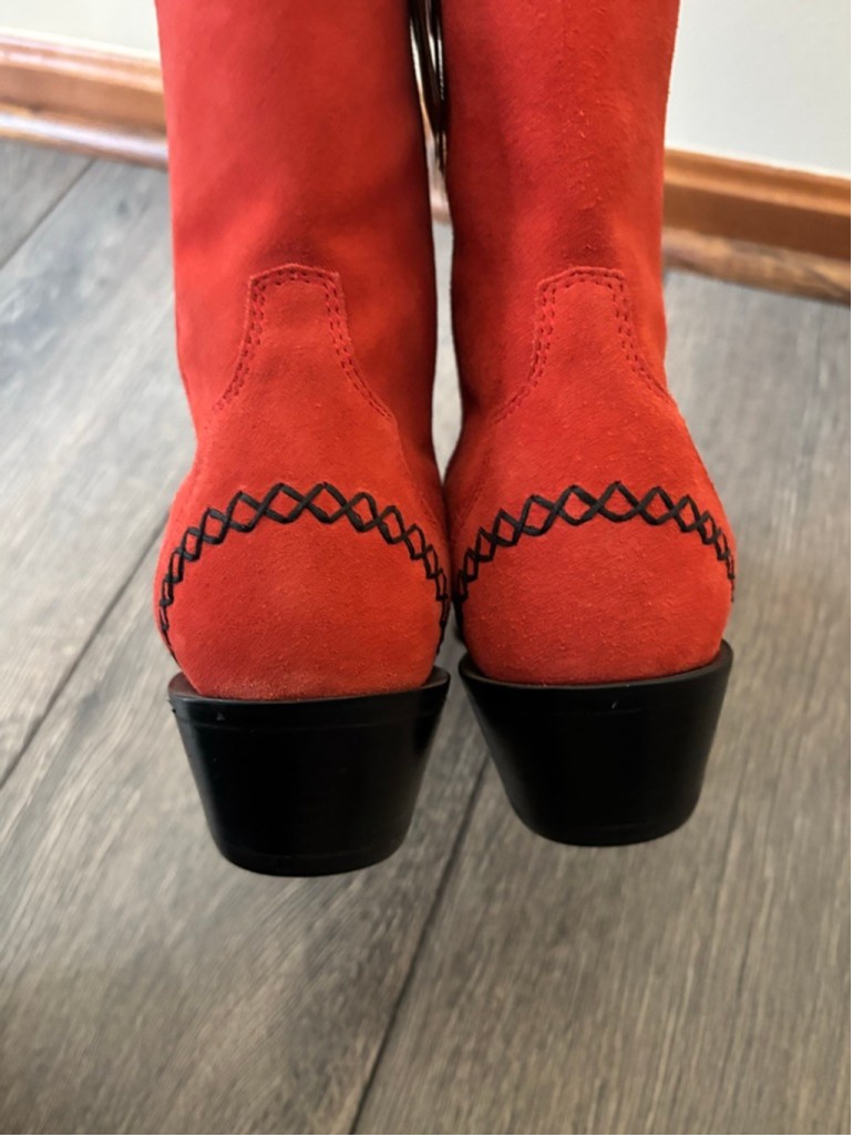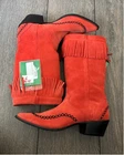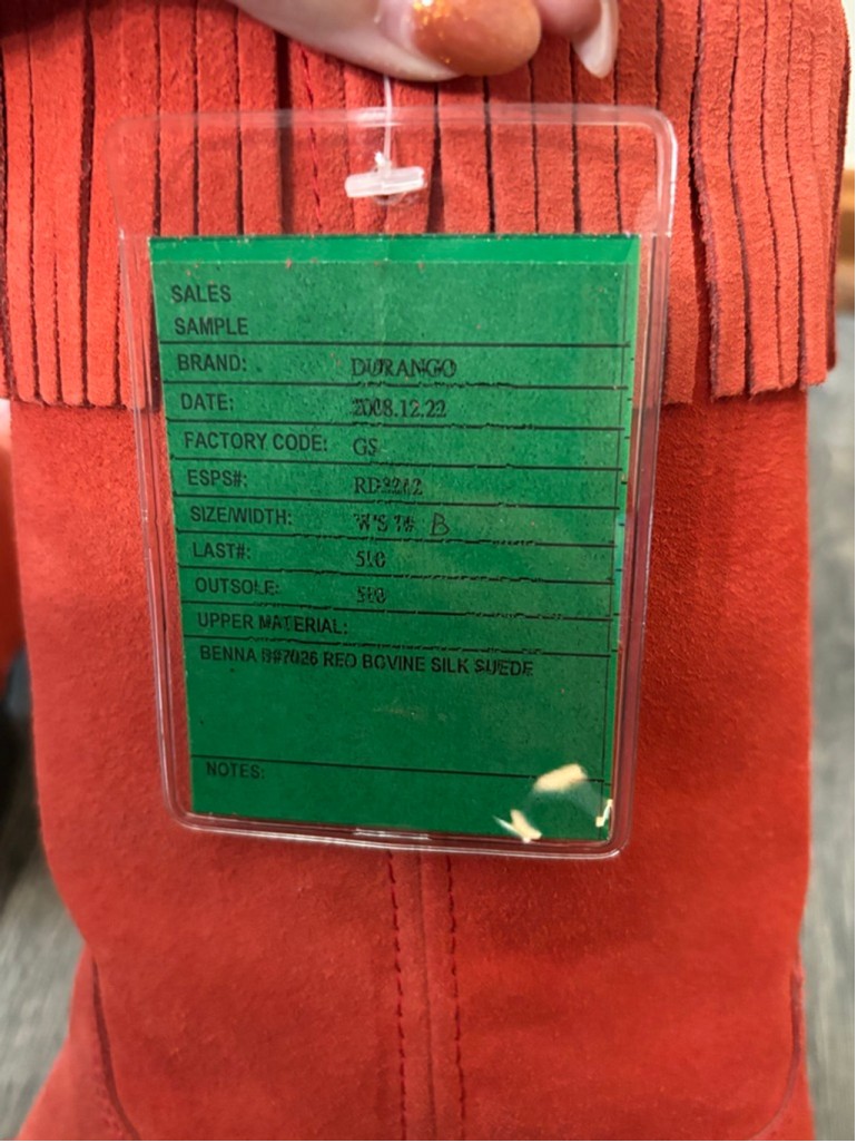 Gorgeous Durango red suede fringe cowboy boots, women’s size 7. These are a sample pair in a rare red color with beautiful embroidered stitching and full-suede fringe. Eye-catching, unique, and perfect for concerts, rodeo, festivals, line dancing, or western styling. Details: • Women’s Size 7 • Sample pair (hard to find) • Red genuine suede • Fringe shaft • Snip toe • Western stitching detail • Comfortable stacked heel • NWT, No box, Excellent condition Why you’ll love them: This color + fringe combo almost never shows up secondhand, and sample Durangos are highly collectible. The suede is soft, the color pops, and they look incredible styled with denim, skirts, or dresses. Ships fast from a smoke-free home. durango boots, western boots, cowboy boots, fringe boots, red suede boots, rodeo boots, women’s western, festival boots, snip toe boots, size 7 boots, rare color boots, sample boots