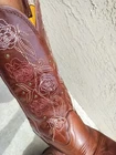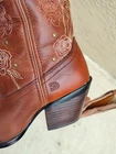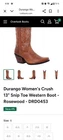 The Durango Women's Crush 13 Snip Toe Western Boots in Rosewood are a stylish and versatile choice for any casual occasion. With a mid-calf shaft, square toe shape, and pull-on closure, these boots offer both comfort and convenience. Crafted from leather with a fabric lining, these boots feature a block heel and medium calf width, making them suitable for everyday wear. The Southwestern theme and Western style add a touch of flair to these classic brown boots, making them a standout addition to any woman's wardrobe.