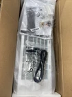 Open box condition. Box is significantly damaged, box was opened and unit’s condition checked. There are two units. One has some light scuffing on one side but is in very good operational condition. The other unit has some scuffing on one corner (see last picture) but is in very good operational condition. It includes all parts, hardware, remote, template, and instructions.