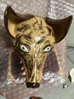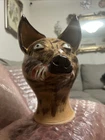 This unique and handmade jug is a must-have for collectors and art enthusiasts. Created by Dwayne Craig from Catawba, North Carolina, the jug features a stunning wolf face design that showcases Craig's exceptional pottery skills. Made of high-quality clay and crafted using traditional pottery techniques, this jug is a true work of art. The beige color and intricate details make it a beautiful decorative piece for any home or office. Perfect for serving beverages or as a conversation starter, this jug is a one-of-a-kind item that is sure to impress. New , used as a display only