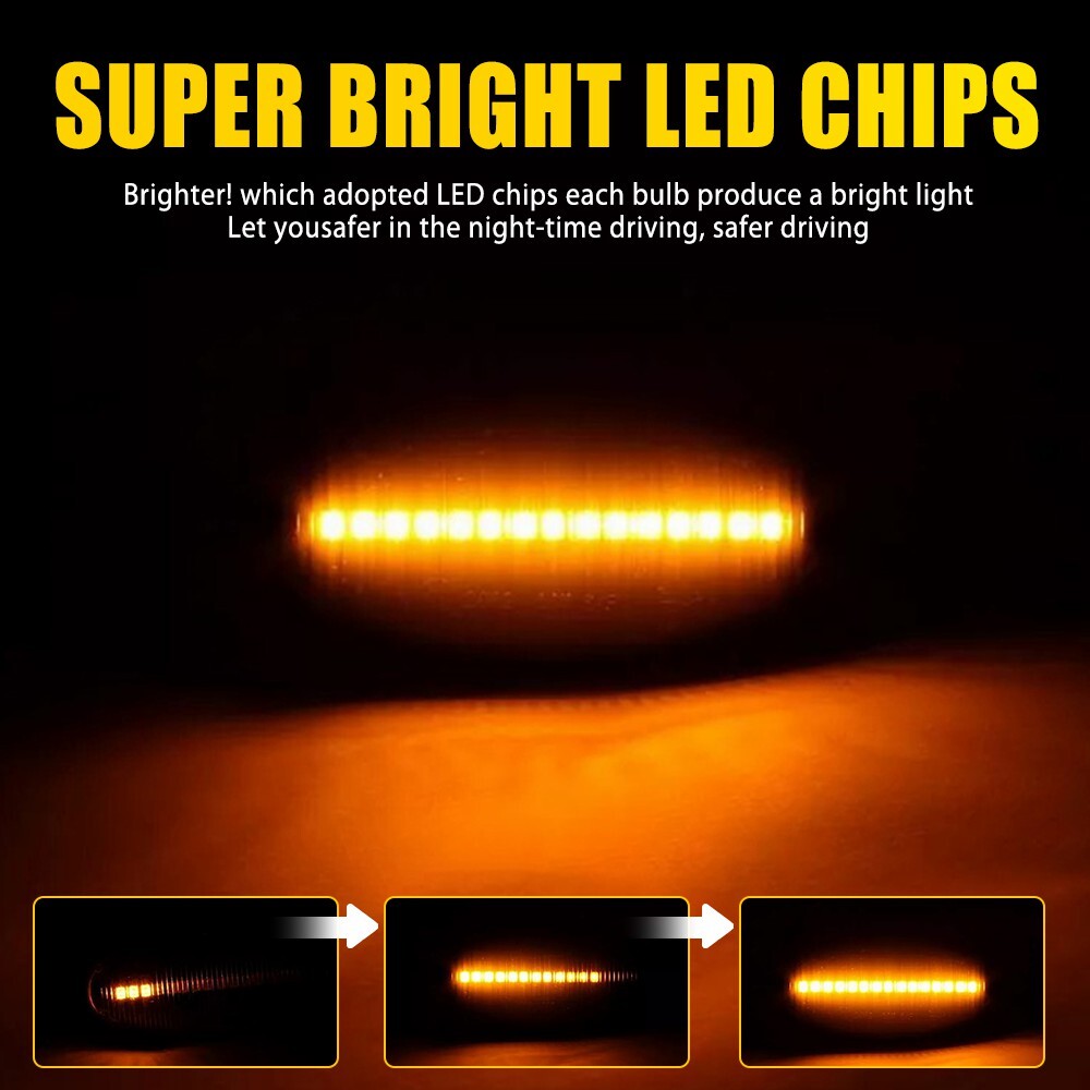 This side marker light is a fantastic upgrade! The smoked lens gives a sleek, modern look while the dynamic amber LEDs are super bright and eye-catching. Installation was a breeze—perfect fit just like OEM. Love the premium feel and the fact that it's waterproof for long-lasting durability. Makes my Mazda stand out in a subtle yet stylish way. Highly recommend for anyone wanting to enhance their car's appearance!