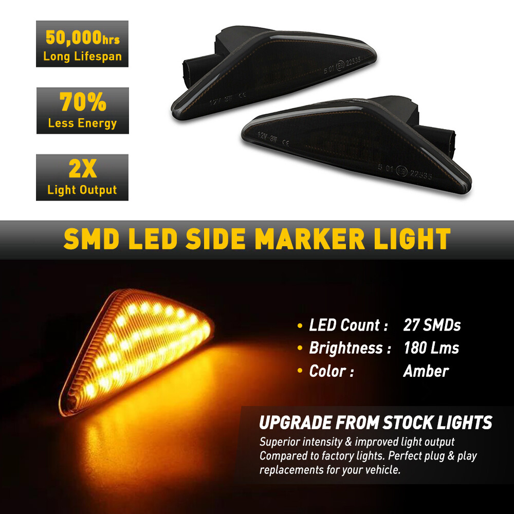 Smoke Lens Front LED Side Marker Light for 2008-14 Dodge Challenger