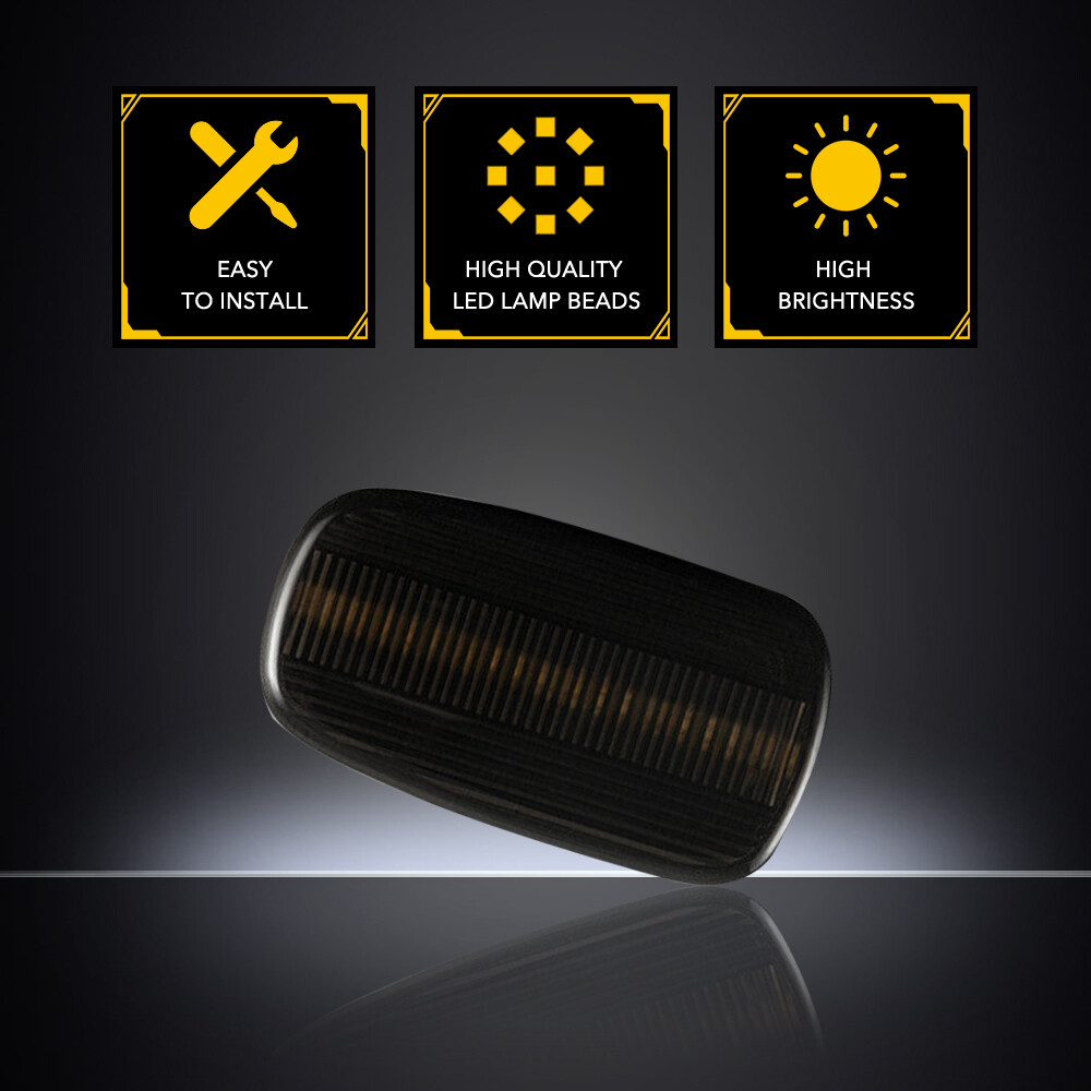 These LED side markers are a fantastic upgrade! The smoked lens gives a sleek, modern look while the bright dynamic LEDs improve visibility. Installation was quick and they fit perfectly on my Scion xB. The build quality feels solid, and the lights are much sharper than the stock ones. Definitely worth it for the style and safety boost—no issues after weeks of use. Highly recommend!