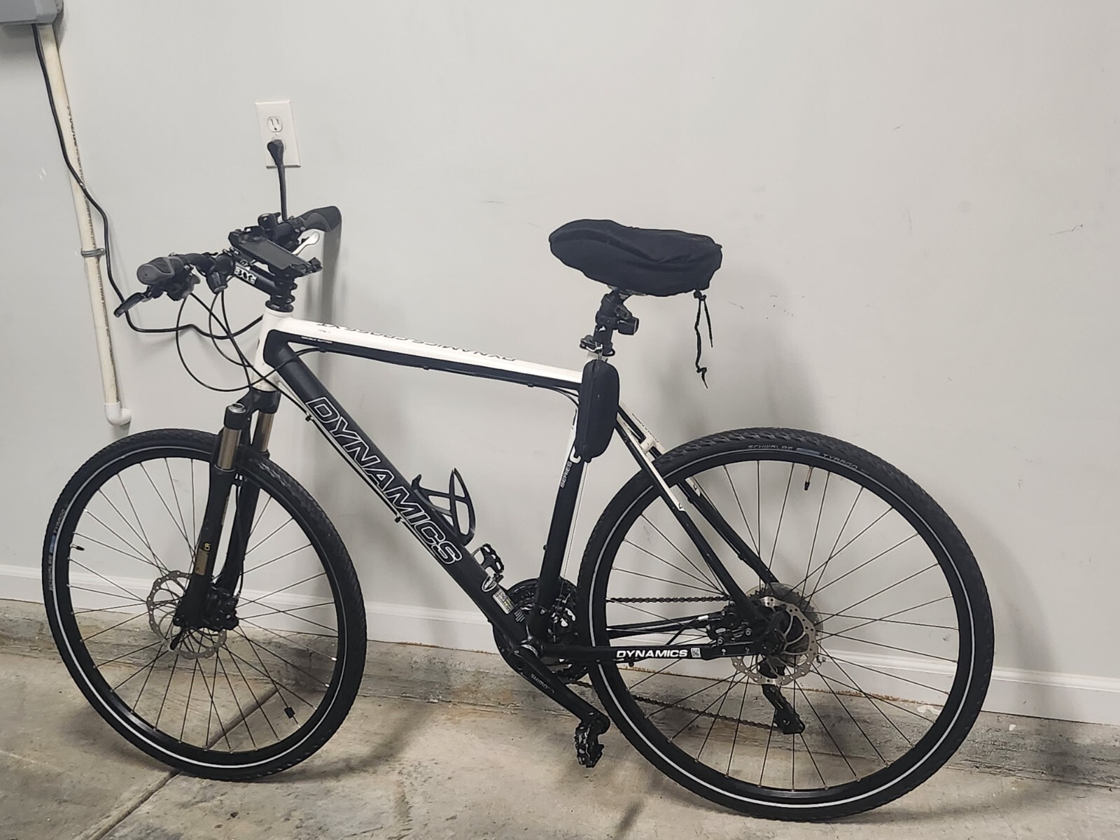 The product is a 26-inch wheel size mountain bike by Dynamics, featuring full suspension (front and rear) made of aluminum alloy. With a frame size of 10.5 inches, this bike is designed for off-road adventures and provides a smooth and comfortable ride over rugged terrain. Ideal for outdoor enthusiasts looking for a durable and versatile mountain bike for their biking escapades.