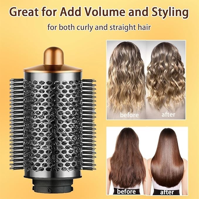 FREE SHIPPING Large Round Volumizing Brush for Dyson Airwrap Attachments Bigger Round Brush Attachment for Dyson Air Wrap Styler, Fluff up and Volumize for Styling (Gold) About this item Large round volumizing brush compatible with dyson airwrap styler accessories, NOT FOR Dyson airwrap 2x. The round volumizing brush draws air into the hair, creating a voluminous effect. The comb teeth increase the volume, allowing for quicker hair drying. The round volumizing brush aids in achieving natural, stylish curls effortlessly. The comb teeth lift the roots while drying the hair, effortlessly achieving curly hairstyles. The round brush attachment is easy to install, high quality and durable. Packaged List: 1*The Large Round Volumizing Brush. Whether for yourself or for friends and family, this hair volumizer tool is an ideal gift choice for both daily styling and professional blow outs.