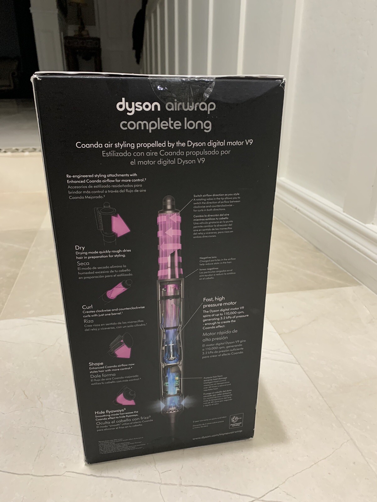 Dyson Airwrap Multi-styler Complete Long (Silver | NIckel). Dyson Airwrap Complete Styler Set Includes Airwrap styler 1.2" Airwrap barrels 1.6" Airwrap barrels Firm smoothing brush Soft smoothing brush Round volumizing brush Pre-styling dryer Storage case Non-slip mat Filter cleaning brush