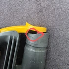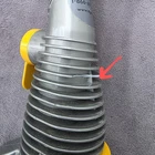 Genuine Dyson DC07 Yellow and Grey Wand/Handle with one attachment. It is pre-owned and will show signs of wear like the small indentation at the bottom of the Wand, and two small cracks on the handle. See pictures marked with red arrow. This does not affect the function of the item.
