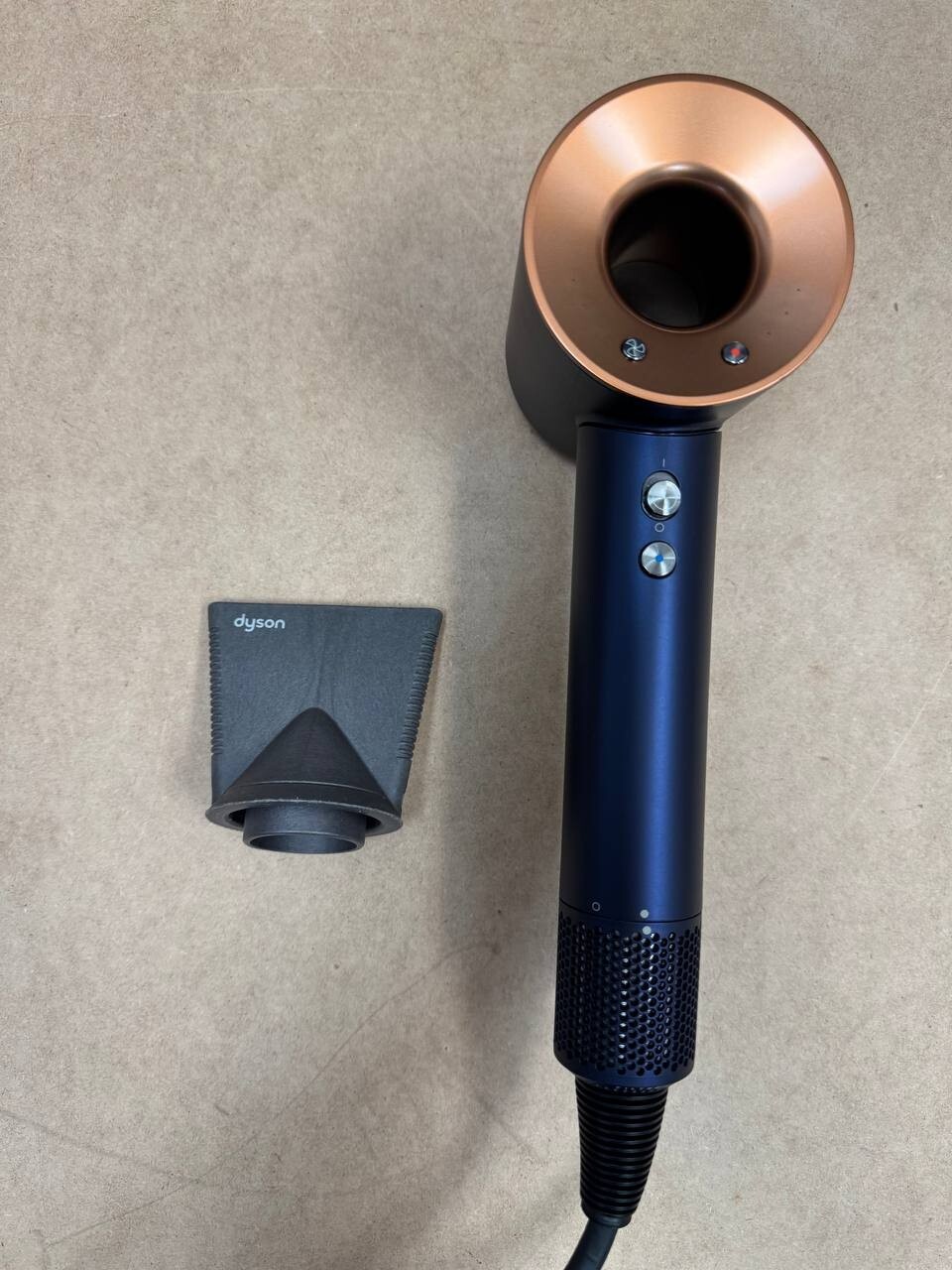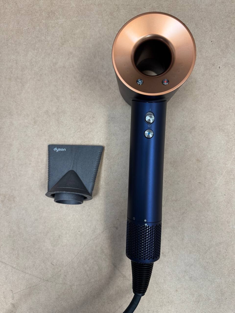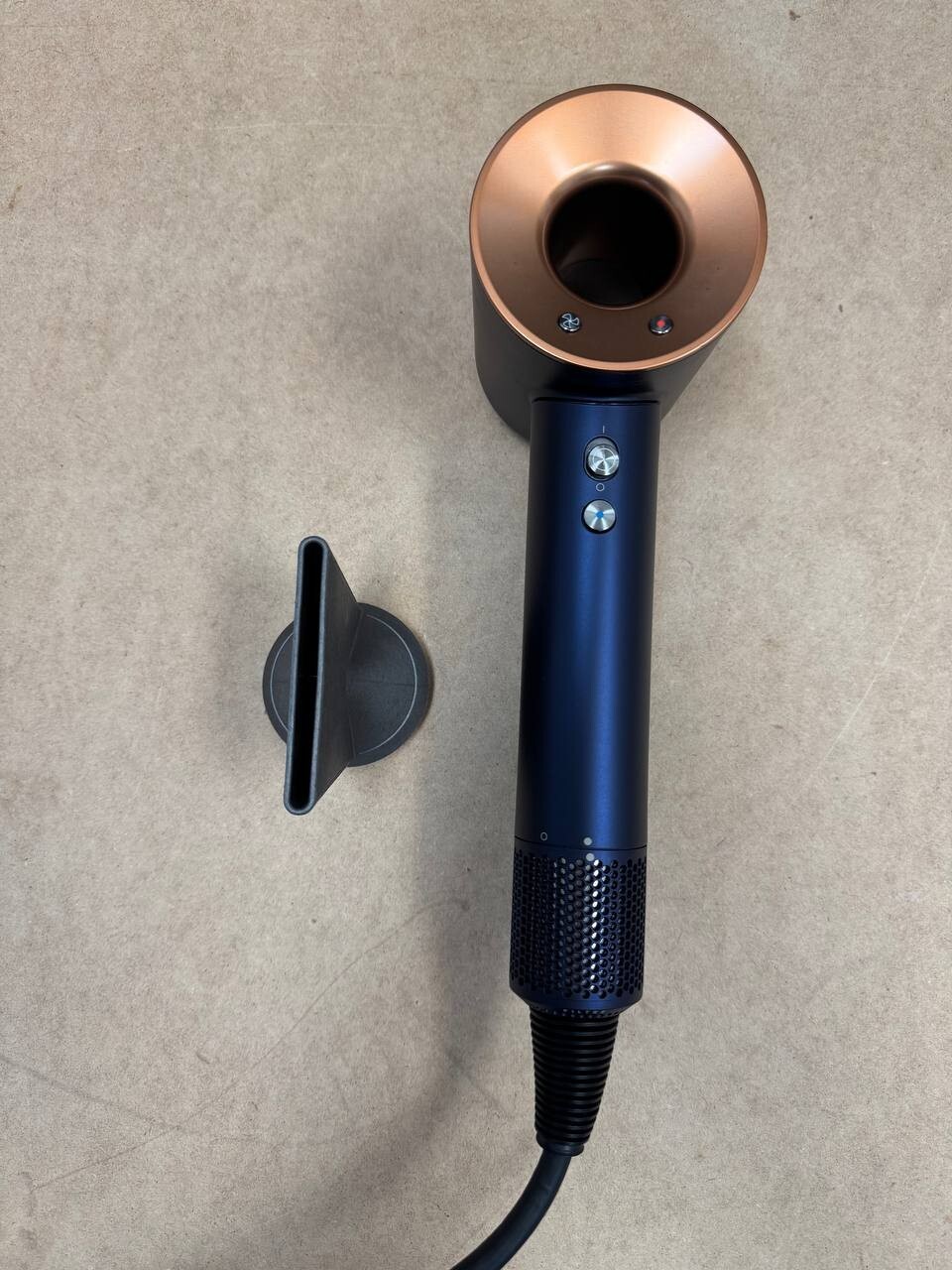 Used Dyson Supersonic HD07 Hair Dryer in premium Prussian Blue/Rich Copper color. With 1 magnetic attachment. Original box not included. Fully functional, with visible signs of use. This is an authentic Dyson device, not a copy. • Dyson V9 digital motor for fast drying • Lightweight and quiet operation • Works with all Dyson nozzles (one included only) • Elegant limited edition finish Great choice if you already own accessories or want the core unit.