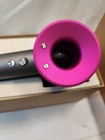 The Dyson Supersonic Hair Dryer in Magenta comes with 5 attachments and features adjustable heat settings for personalized styling. With a power source of electric and a power of 1600W, this hair styling device from the trusted brand Dyson is designed for both men and women. The plastic material and 3-inch barrel size make it easy to use and comfortable for styling. This unit also comes with a 2-year manufacturer warranty, ensuring quality and durability.