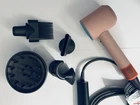*This is a great blow dryer, but selling because I was gifted a Dyson air wrap and feel obligated to use it — the color is so beautiful and it’s a special edition * This blow dryer uses the same airflow technology as the Airwrap and dries hair just as quickly, but this one is honestly easier to hold and use. It’s been the best blow dryer I’ve ever owned and still works like the day I got it. The only reason I’m selling it is because the Airwrap I was given can curl and wave if you need it to and I don’t blow dry my hair as much as I used to, but this was a major purchase for me when I got it and was worth it. I honestly prefer this one over the Airwrap for blow drying and straightening—it’s quicker and more efficient in my opinion. If I hadn’t been gifted the Airwrap, I’d keep this forever. *There is a tiny scrape ~1-2mm in the barrel (see image) not sure when that happened, but it’s there - its still good as new *All accessories/attachments included (Magnetic Attachments: Concentrator, Wide-Tooth Comb, Gentle Air Attachment, Diffuser & Flyaway Attachment). I only ever used it without an attachment or with the concentrator. The Dyson Supersonic Hair Dryer HD07 in Ceramic Pop color is a professional hair dryer designed to provide fast and efficient drying with its powerful electric source. It features adjustable heat settings and incorporates ionic technology to reduce drying time and prevent damage to the hair. The dryer includes a diffuser attachment and has multiple speed and temperature settings, making it versatile for a range of hair types and styling preferences.