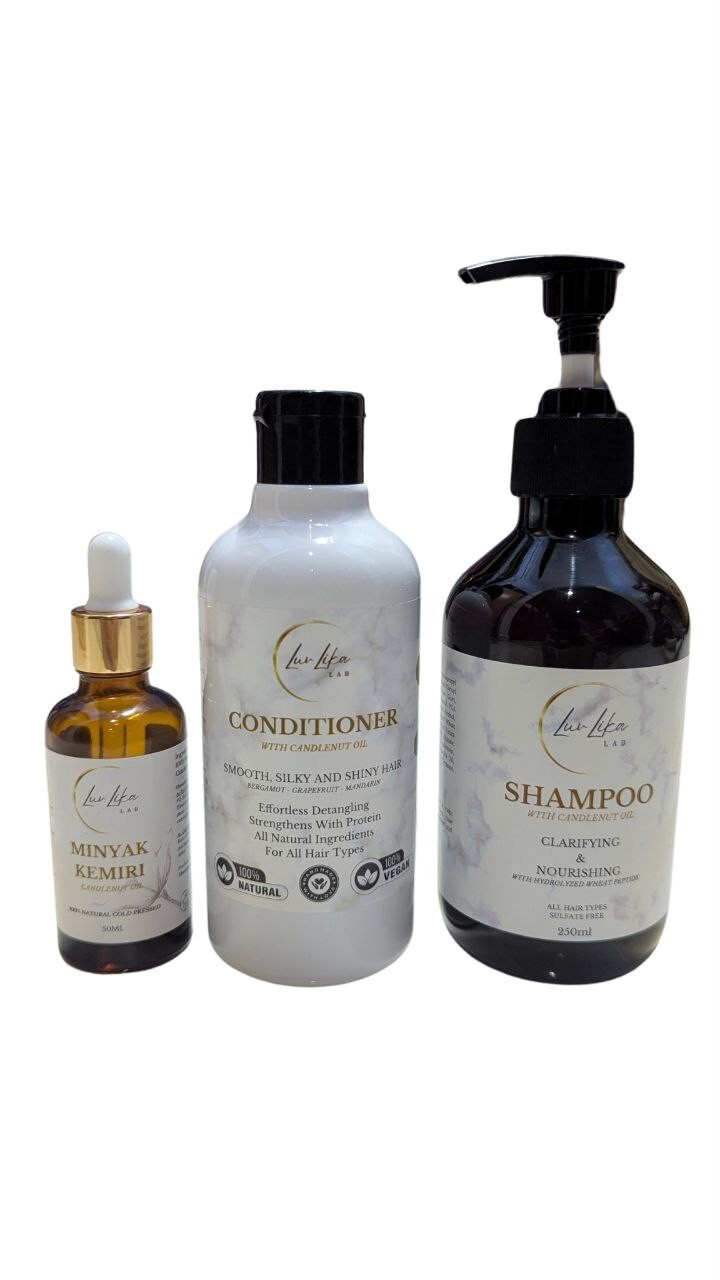 Candlenut oil (minyak kemiri) is commonly used in hair care products like shampoos and conditioners due to its numerous benefits. Here are some of the advantages of candlenut oil in shampoo and conditioner: Strengthens Hair : Candlenut oil is rich in essential fatty acids, which help strengthen hair and reduce damage. It helps repair hair structure that has been damaged by dyeing, heat styling tools, or environmental factors. Promotes Hair Growth : The nutrients in candlenut oil can stimulate hair follicles, encouraging healthier hair growth and helping to reduce hair loss issues. Moisturizes Hair : Candlenut oil acts as a good moisturizer, helping to retain moisture in the hair and prevent it from becoming dry and brittle. Treats Dandruff : Candlenut oil has antimicrobial properties that can help reduce dandruff and itching on the scalp. Enhances Hair Shine : Using candlenut oil in shampoo or conditioner can give the hair a healthy shine, making it look more glossy and radiant. Softens Hair : Candlenut oil can make hair softer and easier to manage, reducing problems with tangling and difficult-to-manage hair. With consistent use, shampoos and conditioners containing candlenut oil can provide significant benefits for hair health and beauty.