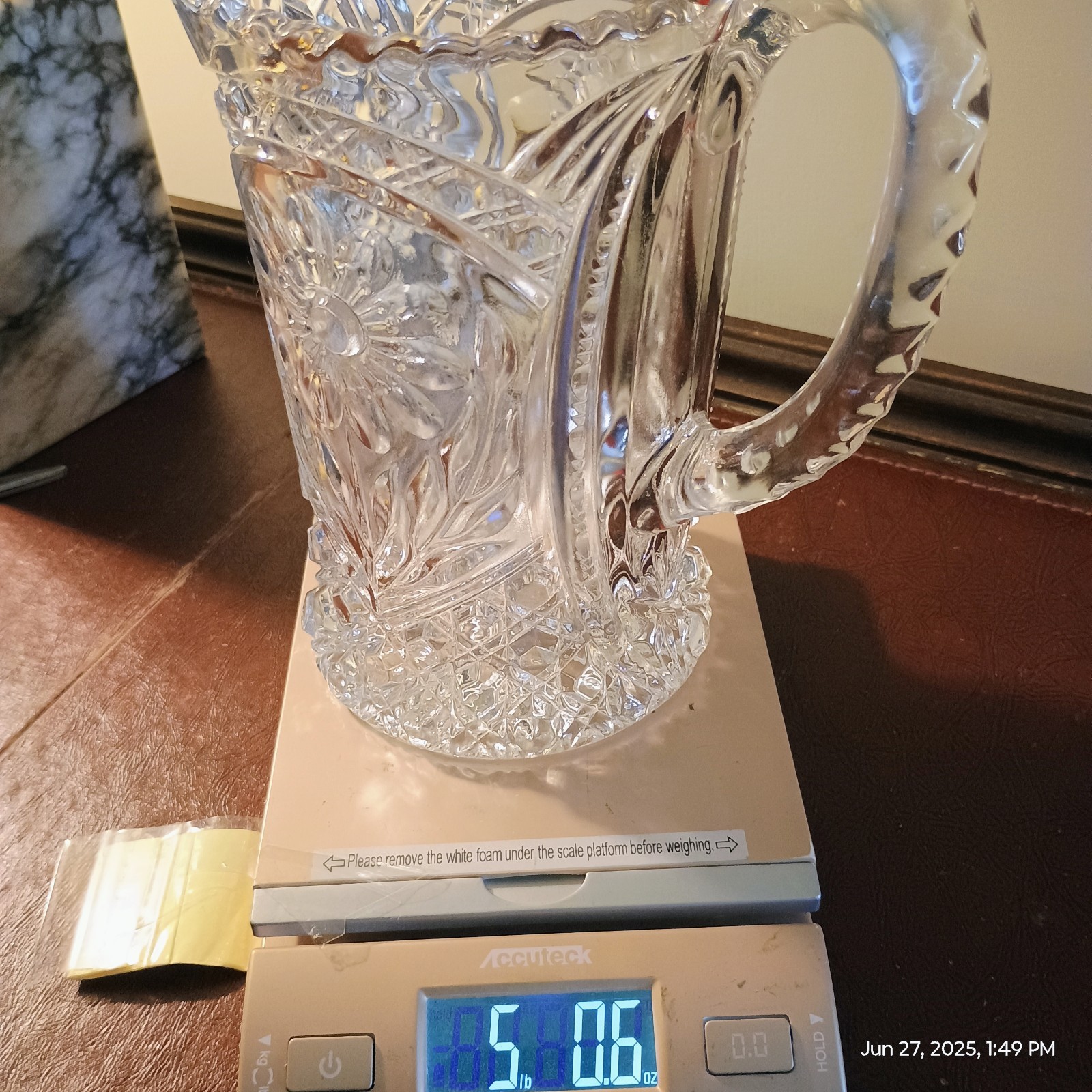 $ 83.43Vintage Lead Crystal Diamond Star Cut Faceted Flower Water Pitcher