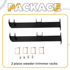 Fitment: Holds up to 2 gas weeder trimmer, lawn trimmer, hedge trimmer, grass trimmer, lawn edger, pole saw and weedeater. Our holders fit most straight shaft trimmers High Quality: Made of high-quality steel materials, stable and reliable, not easy to wear and age. And it is also not easy to rust, which enables a long lifespan. The powercoated surface provide protection and durability for rack Reliable Performance: The 2 place weeder trimmer racks not only store and organize trimmers but also improve work efficiency. The lock design can prevent the trimmers from sliding off and keep trimmers secure Easy installation: Our holders can be installed anywhere on your trailer or you can install it on your truck bed. Easy to use and easy to install Package Included: 2 place weeder trimmer racks. All mounting hardware included. Please note that trimmers are not included.
