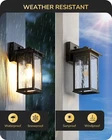 EDISHINE Outdoor Wall Light, Dusk to Dawn Exterior Light Fixture, Modern Porch Light Wall Mount Sconce, Clear Water Ripple Glass, Black Metal Outside Wall Lantern for Front Door Garage Patio About this item [PC Mode] Our outdoor wall lantern features dusk-to-dawn sensor technology, as the sun sets, it automatically illuminates with a soft glow to welcome the night, when the first rays of morning light appear, it intelligently turns off, enhancing your home's energy efficiency [Ripple Glass Shade] This outdoor light fixture has a clear ripple glass shade that mimics the flow of water, each beam of light passing through seems alive, dancing gracefully in your space; black painted finish with gold detailing adds a refined touch, ideal for front door, porch, garage, patio, hallway, balcony [Durable & Weatherproof] Crafted with premium aluminum with a high-tech painting process, the exterior wall lamp is rust-resistant and corrosion-proof, effectively withstands harsh weather conditions, ensuring the light remains secure and reliable, day and night, through all seasons [Convenient Open-Bottom] The specially designed large opening at the bottom of the lampshade simplifies bulb replacement; no need to disassemble or use complex tools; one person can easily complete the outside wall sconce process; you will appreciate the unprecedented convenience [Standard E26 Base] This dusk to dawn front porch light perfectly accommodates various E26 base bulbs (up to 60W), including LED, incandescent, halogen, and CFL bulbs (bulbs not included); allows you to choose the ideal bulb for your needs, creating the perfect lighting effect