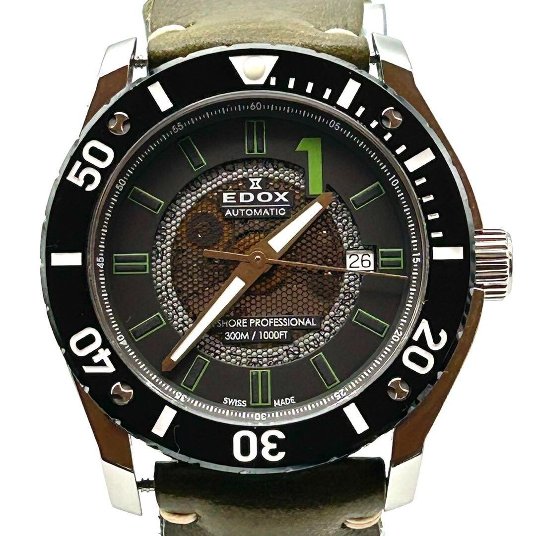 EDOX Chrono Offshore 1 Professional 80088-37R-NIR2 Automatic Men's Watch Tested Description [product name]. EDOX wristwatch Men's Class One Automatic Chrono Offshore 80088 Black and Green Leather belt The belt has been replaced with a khaki color leather belt to match one color of the dial. The belt has been replaced and is not genuine. The original belt is also not available. This is an Edox Class One, a classic watch for men who love the sea that looks tough and can show its masculine charm in any situation. 300-meter water resistant, this is a high-spec model automatic model watch. The black coloring with green indexes is a colorful addition to the black coloring. The design of Class One's 1 is also unique to EDOX. [Brand] EDOX [Dial color] Khaki×Black Steel case, Black dial [Part Number] 80088 [Color] Belt Khaki (greenish) [Size] Case diameter: approx. 43mm Case diameter: approx. 43mm Case thickness: approx. 13mm Around the wrist: approx. 18cm, width: approx. 2.2cm Automatic (self-winding) Condition The watch is in relatively clean condition, but there are some small scratches on the case. The watch is currently in operation. The day difference is being measured. [Accessories] Leather case We pack and ship with care. Payment We accept credit cards, debit cards, Apple Pay, Google Pay, and paypal. Payment must be made within 3 days of purchase. Shipping It will be shipped by Fedex or DHL or Japan Post. Shipping from Japan with Tracking Number. Items will be shipped within 5 business days after payment is received. Shipping is only available to the address registered on ebay. Please note that any address not registered on ebay is not acceptable to ship. Terms of Sale: Return ~Unconditional Return Policy~ Customer service and satisfaction are very important to us. I have an unconditional return policy. Please contact us first for return before you ship it back to me. Return is allowed when the condition does not match with description. All returned items must be the original condition. Please keep in your mind that we take pictures of all the item's details to avoid any problem. If you ask for a refund or return, we might ask you to take a picture of the item to make sure it matches our record. International Buyers - Please Note: Import duties, taxes, and charges are not included in the item price or shipping cost. These charges are the buyer's responsibility. Please check with your country's customs office to determine what these additional costs will be prior to bidding or buying. Thank you for your understanding.