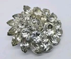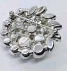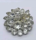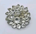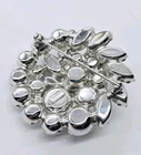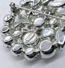 EISENBERG Brooch 3-D Layer Crystal Rhinestone Rhodium Plated Pin Large Floral 2"
