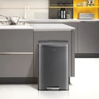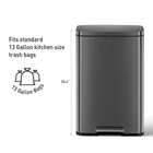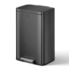 The Madison Matte Black step kitchen trash can from EKO - constructed of quality stainless steel with a matte black painted finish that complements your kitchen style with an refined, updated look that also hides smudges and fingerprints. The Madison 13.2 Gallon (50 Liter) standard size trash can offers convenient, hands-free trash disposal in an understated sheen that works with your stainless, white, black, any appliances and decor. The rugged step pedal mechanism is built to withstand years of daily use, and the bi-force damper soft open and close lid prevents slamming and banging. Stay open locking lid allows you to hold the lid open longer when necessary. Use your favorite deodorizer in the built-in compartment on the underside of the lid to keep your kitchen smelling fresh between bag changes. The removable polypropylene inner liner has a cut out bag fixer slot to tuck in your trash bag so it won't slip down into the can. So easy to maintain with a simple wipe with a soft cloth. Generous 50L (13.2 Gallon) capacity takes standard kitchen trash bags so no special orders required. EKO brand extra-strong drawstring kitchen trash bags are available: Size Code F. Look for EKO model # EK33706B. Dimensions: 16.9"W x 14.3"D x 25.4"H. Height with lid open: 36.6" Ultimate fingerprint resistancy - Crafted from superior rolled steel with a refined, fingerprint-resistant matte black powder coat, this trash can embodies durable elegance, blending seamlessly into any home or office setting while offering a clean, stylish waste disposal solution. Whisper-quiet Closing - The rugged step pedal mechanism is built to withstand years of daily use, and the bi-force damper soft open and close lid prevents slamming and banging. Stay Open and Do Your Thing - This kitchen garbage can boasts an easy-to-use lid lock, ensuring it stays open as long as needed. Quality Construction Built to Endure - Our durable foot pedal is built to last over 200,000 times, ensuring smooth and reliable operation for years to come! Elevated Inner Bucket with Handles: The Madison kitchen or office trash can features a raised inner bucket with convenient handles, ensuring swift and hassle-free bag replacement.