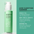ACNE-FIGHTING CLEANSER: Stubborn breakouts are no match for this acne-fighting cleanser that is gentle enough for daily use. It lathers to help remove makeup, control oil and dirt, and clarify pores. PROMOTES HEALTHY SKIN: The e.l.f. SKIN Blemish Breakthrough Acne Clarifying Cleanser helps reduce current acne and promote healthy skin post-breakout. INFUSED WITH SALICYLIC ACID: The dermatologist-developed formula is packed with Salicylic Acid & Zinc PCA , which helps reduce current blemishes & prevent new ones, Niacinamide, which soothes skin, and Tranexamic Acid, which helps even out skin tone. HOW TO USE: On damp skin, gently massage 1-2 pumps of acne cleanser onto face and neck and rinse thoroughly with warm water, morning and evening. Great for oily and acne-prone skin. VEGAN & CRUELTY-FREE: 100% vegan, e.l.f. is double-certified cruelty-free by Leaping Bunny & PETA. What is it: A gentle gel cleanser with 1% Salicylic Acid and other acne-fighting ingredients that lather to help remove makeup, control oil and dirt, and clarify pores. Why you'll love it: Works to help remove debris, control excess oil, and clarify pores Helps reduce current acne and promote healthy skin post-breakout Gel formula gentle enough for daily use Powered by acne-fighting ingredients like Salicylic Acid, Niacinamide, Zinc PCA, and Tranexamic Acid Fragrance-free Dermatologist-developed and non-comedogenic Key ingredients: Salicylic Acid & Zinc PCA - Helps reduce current blemishes and prevent new ones Niacinamide - Soothes and evens out skin tone Tranexamic Acid - Helps even out skin tone Great for: Oily Skin, Acne-prone skin All e.l.f. products are free from phthalates, parabens, nonylphenol ethoxylates, triclosan and triclocarban. Proud to be 100% vegan, cruelty-free, and Leaping Bunny Certified. Because kindness is chic.