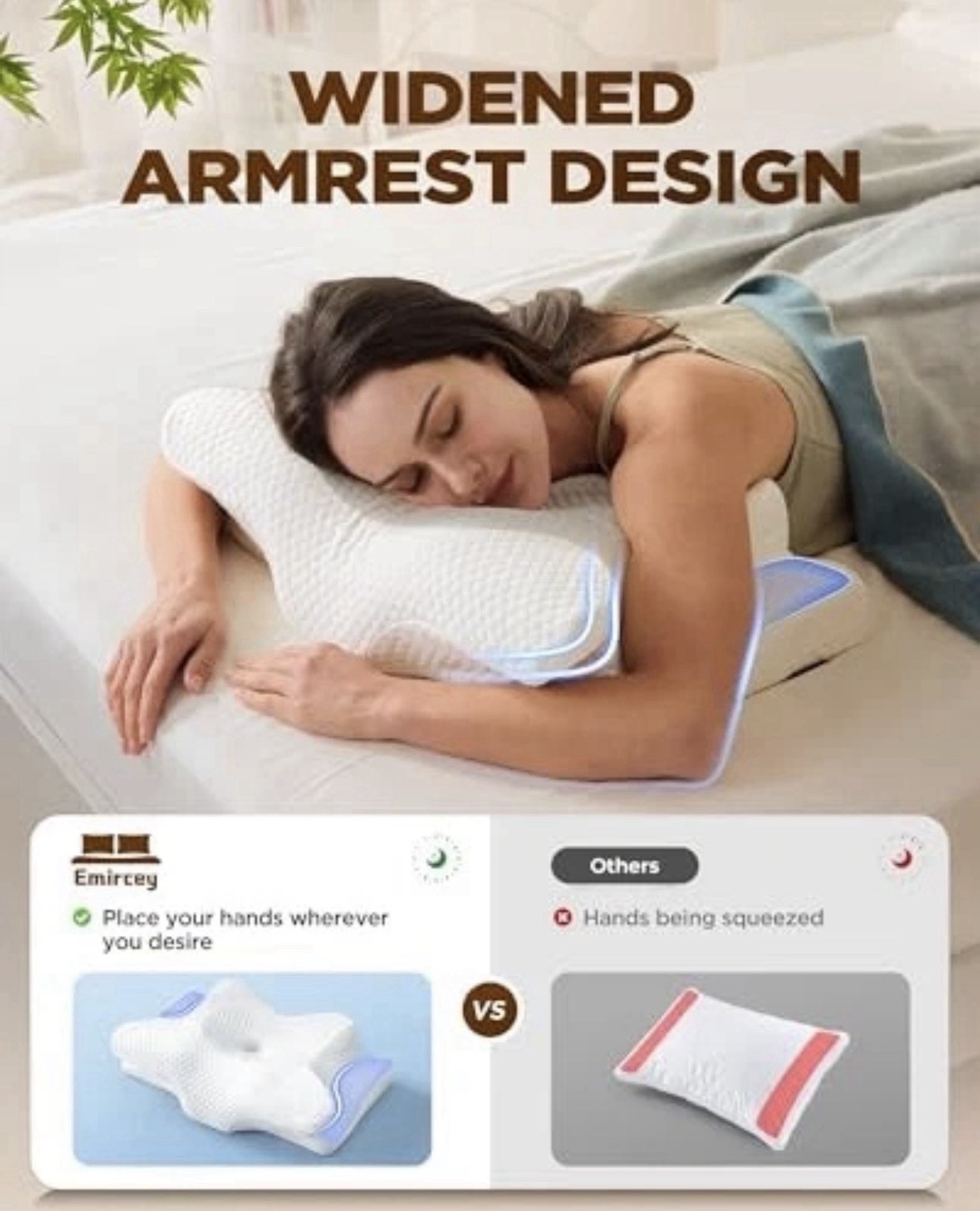 The EMIRCEY Dream Without Pain Cervical Neck Pillow is designed for sleeping in the bedroom. It measures 22 inches in length and 17 inches in width, providing ample support for the neck. The standard grey color adds a touch of comfort to the room, while the Emircey brand ensures quality and durability. Perfect for those looking for a supportive and comfortable pillow to help them sleep better.