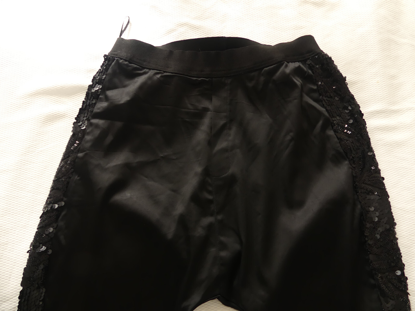 These are a pull-on stretch PANT, in black, with a drop crotch that tapers into a slim leg. This easy fit, easy to wear pant features a soft elastic waistband, faux fly and side pocket detail. The side panels are covered with black sequins in two sizes down the side of each leg. The soft luxe fabric has a lovely high gloss sheen, satin-feel and good stretch to keep you feeling comfortable. The perfect pants to party through the night! They are from EMPIRE ROSE and are a size ‘XS’, which I have estimated to be a size Aus 6 (USA 2 / UK 4 - 6), so please check the measurements below, to ensure a good fit. The approximate measurements are: Waist: 64cm Hips: 102cm Length: 95cm Inside Leg: 65cm Front Rise: 33cm They are in EXCELLENT condition, with light wash/wear. Lots more information about these fabulous pants can also be found in Item Specifics. JJ017 Please take a look at the tons of other gorgeous items I have available in your size! I love to combine postage and save you money! So if you are purchasing more than one item from me, please wait for me to send you a combined invoice, or press the 'Request a Total' button in your Cart before paying. I rate my items in the following way: BNWT / BNWOT: Brand New, With Tags or Brand New, Without Tags (some part of the tag will still be attached). New items that have never been worn. EXCELLENT: has been worn, but shows very few actual signs of wear. GOOD: has been worn and is showing light signs of wear. FAIR: has been worn and is showing more signs of wash/wear - or has a small fault, which will be clearly described in the listing I am only human and can make mistakes in my listings and descriptions - so if for any reason you are unhappy with your purchase, please contact me using the 'Contact Seller' button first, so we can quickly resolve the issue. This item comes from a SMOKE FREE HOME but the odd puppy hair may drift in due to the fact she is my darling shadow throughout the day.