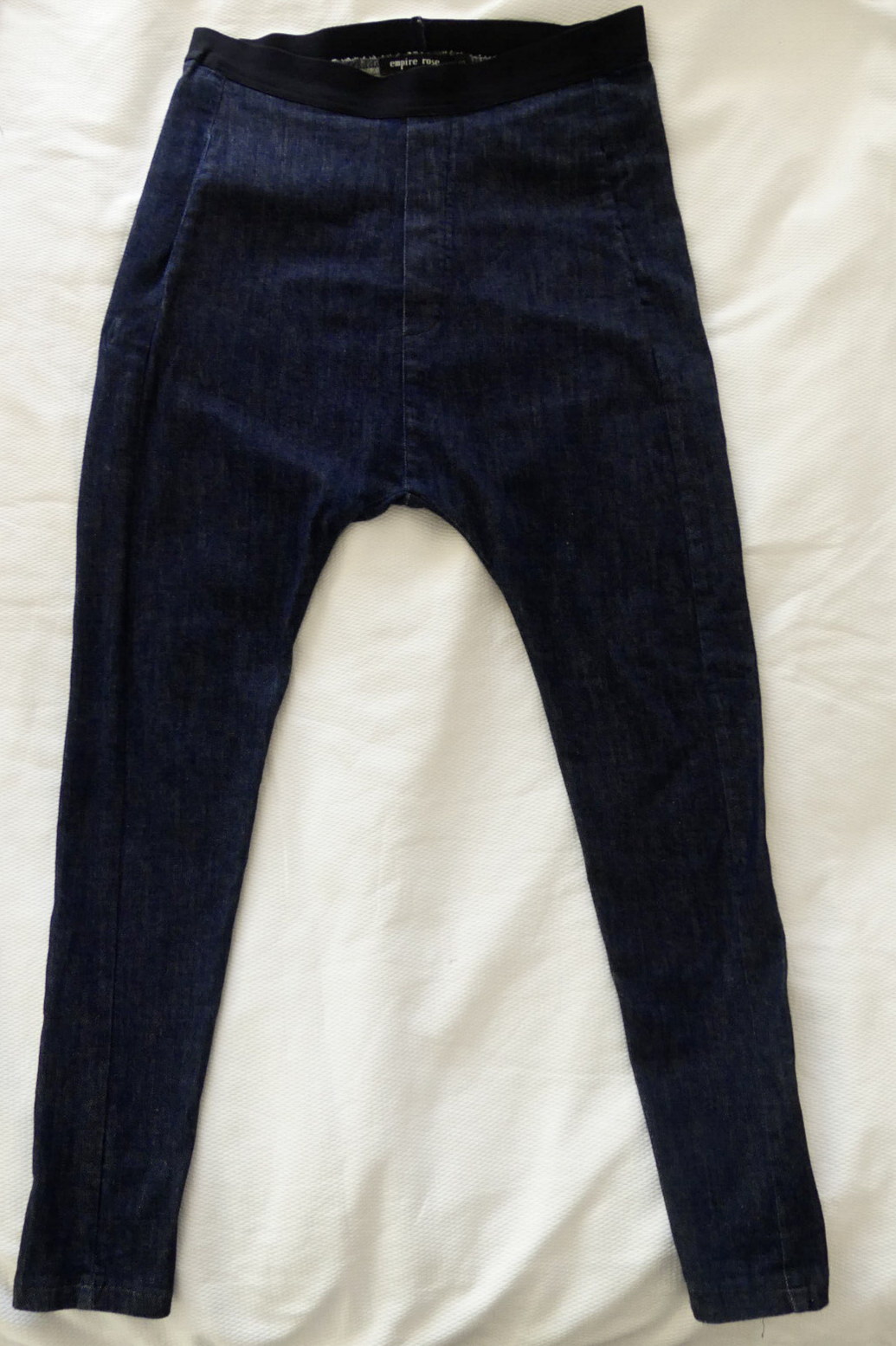 These gorgeous PANTS are a cropped / ankle length and are a jeans material. They are dark blue, with an elasticated waist and a skinny leg. They are a Harem / Drop crotch style and have a pocket on each hip. They are from EMPIRE ROSE and are a size ‘S’, which I have estimated to be a size Aus 8 (USA 4 / UK 6 - 8), so please check the measurements below, to ensure a good fit. The approximate measurements are: Waist: 72cm Hips: 94cm Length: 96cm Inside Leg: 65cm Front Rise: 33cm They are in EXCELLENT condition, with light wash/wear. Lots more information about these fabulous pants can also be found in Item Specifics. LL010 Please take a look at the tons of other gorgeous items I have available in your size! I love to combine postage and save you money! So if you are purchasing more than one item from me, please wait for me to send you a combined invoice, or press the 'Request a Total' button in your Cart before paying. I rate my items in the following way: BNWT / BNWOT: Brand New, With Tags or Brand New, Without Tags (some part of the tag will still be attached). New items that have never been worn. EXCELLENT: has been worn, but shows very few actual signs of wear. GOOD: has been worn and is showing light signs of wear. FAIR: has been worn and is showing more signs of wash/wear - or has a small fault, which will be clearly described in the listing I am only human and can make mistakes in my listings and descriptions - so if for any reason you are unhappy with your purchase, please contact me using the 'Contact Seller' button first, so we can quickly resolve the issue. This item comes from a SMOKE FREE HOME but the odd puppy hair may drift in due to the fact she is my darling shadow throughout the day.