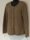 EMRECO BEIGE LONG SLEEVE FLUFFY CARDIGAN TWO POCKETS BUTTON FRONT FASTENING SIZE 12 THIS MEASURES ACROSS THE CHEST 19" PIT TO PIT THE LENGTH IS 25.5" MACHINE WASH
