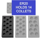 ER20 Series Collet Holding TrayFeatures: Holds up to 14 collets, Protects and Stores your valuable collets, Low profile will Fit into Most Tool Chest, Made from High Quality EVA Foam, Non Porous Surface, Oil-Resistant, Color is Black Specs: Collet Series: ER20, Number of Collects Held: 14, Material: Firm EVA Foam, Measures: 4”x8” by 1.2” thick Dog River Tools is a Trusted Brand; we take pride in the quality of our products. Please check out our Belt Grinders, Drag Knife Cutters, CNC Touch Probe Plates and more! Engineered from firm EVA Block Foam Holds up to 14 ER20 collets Tool storage organizer measures 4”x8” by 1.2” thick Low profile will easily fit into most drawers, tool boxes Alternative to wooden or metal stands, Collets are not included
