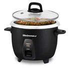 The Elite Gourmet ERC2001BX 10-Cup Electric Rice Cooker is a stylish and modern kitchen appliance that uses 304 surgical grade stainless steel for its construction, ensuring durability and easy maintenance. With a capacity of 10 cups cooked, this rice cooker and steamer features a black color and a sleek glass lid for added convenience. It operates with a wattage of 300.0 and is designed for easy cleaning with hand wash care instructions. Perfect for any home kitchen, this rice cooker is a reliable and efficient addition to your cooking tools.