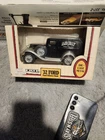The ERTL 1932 Ford Panel Delivery Bank in black is a 1:25 scale diecast model of a Ford delivery truck. It features the Agway branding and is designed as a bank, making it a unique collectible piece. This non-domestic product is part of ERTL's series and is suitable for fans of diecast and toy vehicles, specifically those interested in contemporary manufacture. The model represents a vintage vehicle from 1932, adding to its appeal for collectors of classic cars and trucks.