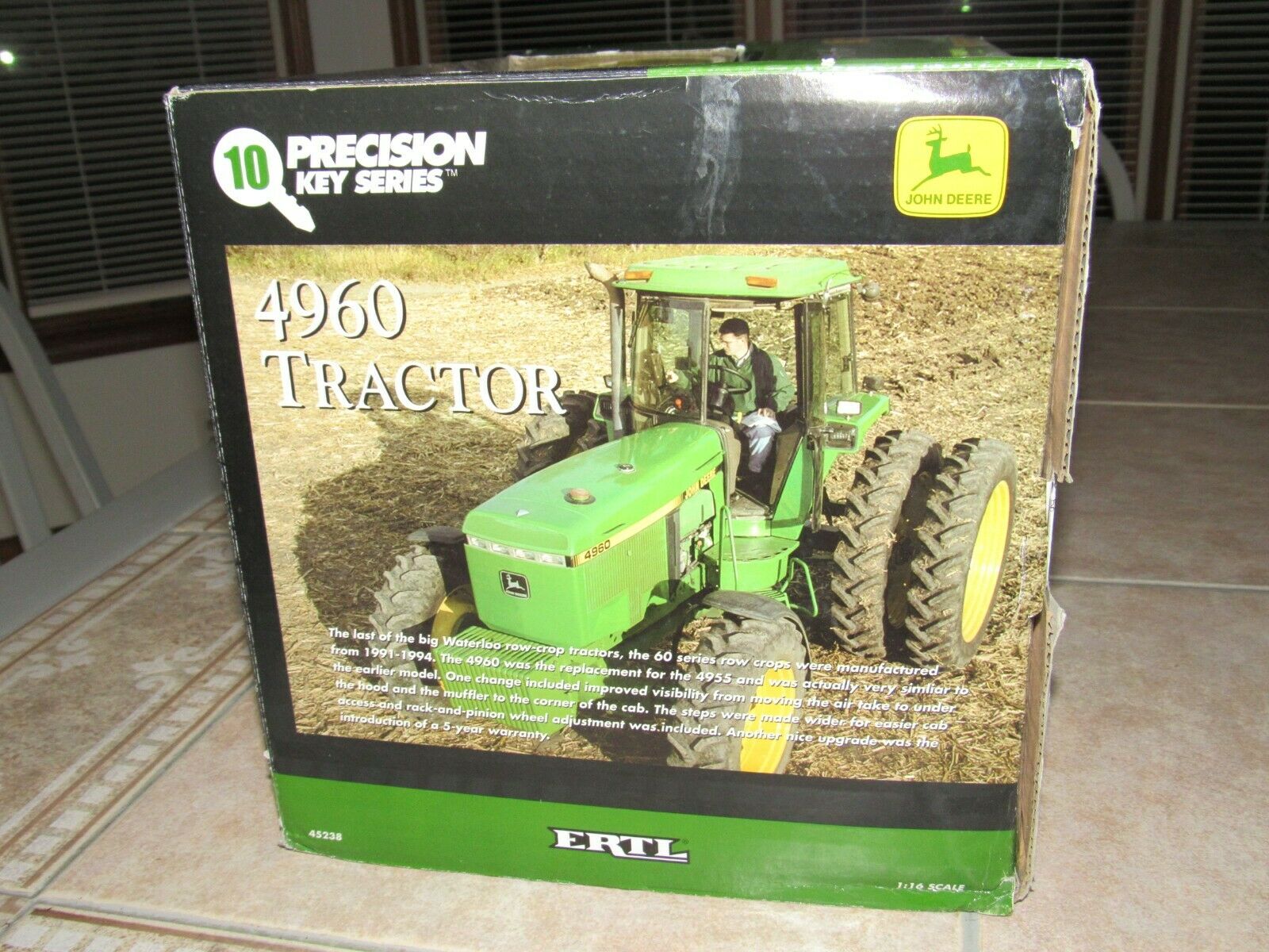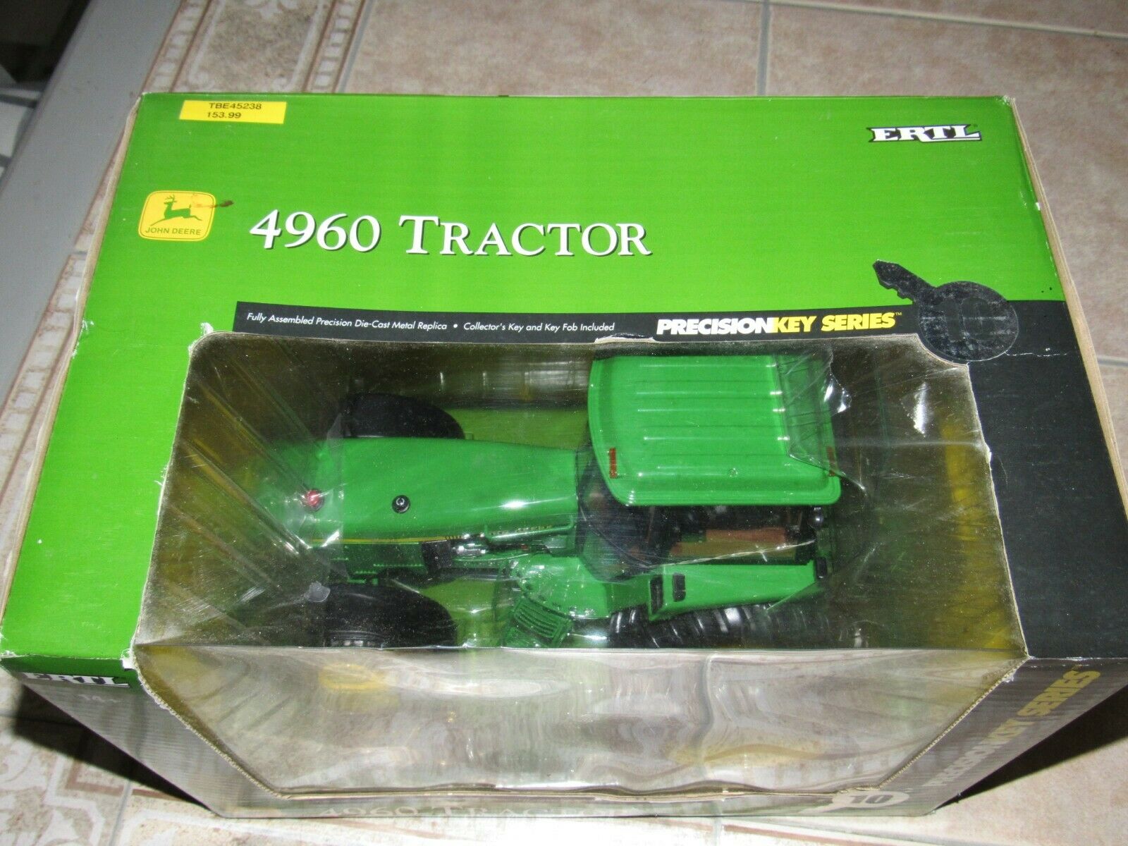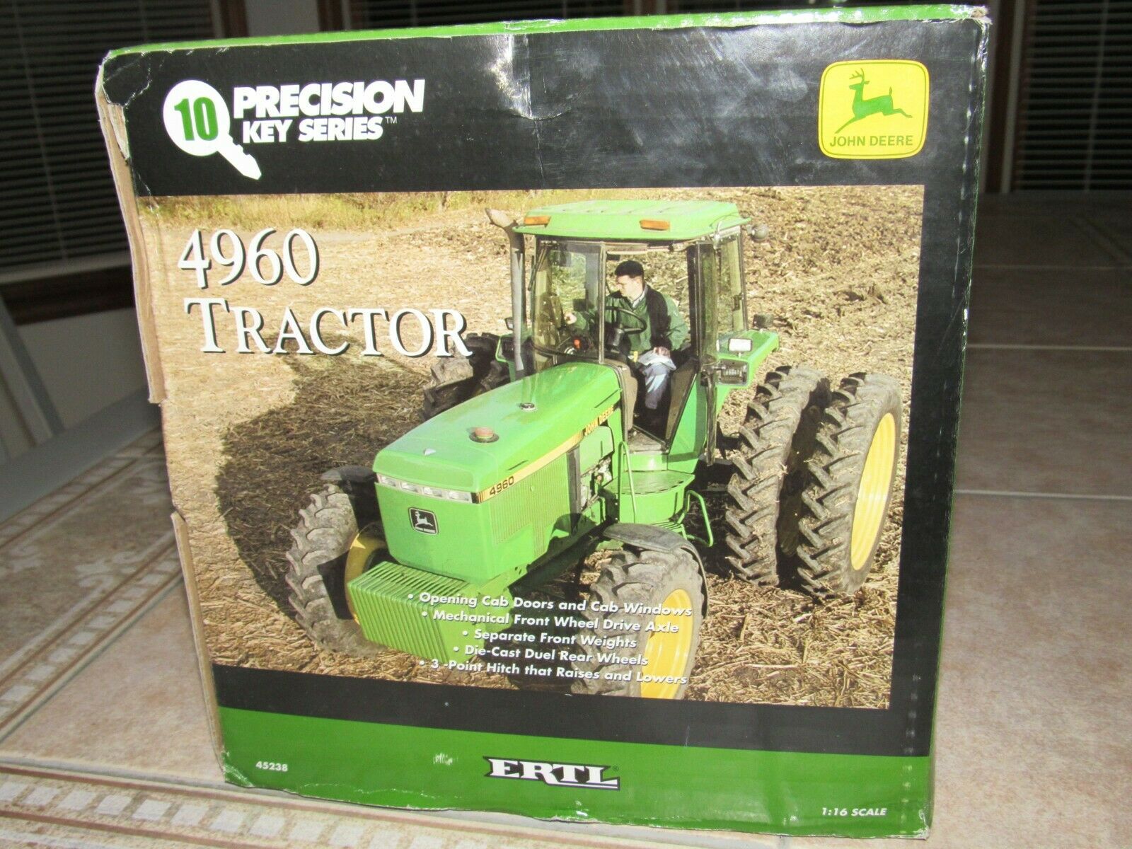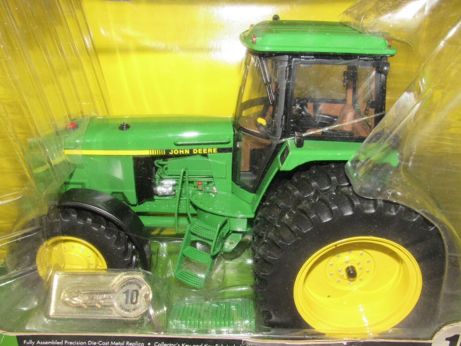 ERTL PRECISION KEY #10 JOHN DEERE 4960 TRACTOR - NIB - NEVER DISPLAYED !! HIGHLY COLLECTIBLE 1/16 SCALE, DIE-CAST ERTL PRECISION KEY #10 JOHN DEERE 4960 TRACTOR. FULLY ASSEMBLED PRECISION DIE-CAST METAL REPLICA. OPENING CAB DOORS AND CAB WINDOWS * MECHANICAL FRONT WHEEL DRIVE AXLE * SEPARATE FRONT WEIGHTS * DIE-CAST DUAL REAR WHEELS * 2-POINT HITCH THAT RAISES AND LOWERS COLLECTOR'S KEY AND KEY FOB INCLUDED. NEW IN THE BOX - GUARANTEED NEVER DISPLAYED - ALL FACTORY TIE DOWNS PRESENT. BOX IN VERY GOOD/EXCELLENT CONDITION WITH MINOR SHELF WEAR. BUY WITH CONFIDENCE - CHECK MY FEEDBACK! ONE YOU'LL BE PROUD TO OWN!!! 14 DAY MONEY BACK GUARANTEE. SHIPPED USPS PRIORITY MAIL, INSURED. NOTE: I SHIP IN 3 BUSINESS DAYS.