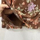 The EST. 1946 Brown Floral Mesh Long Sleeve Cutout Boho Top in size L is a stylish and trendy piece perfect for festivals and casual outings. Made from lightweight and breathable nylon and spandex fabric, this top features a round neck, pullover closure, and long fit sleeves. The mesh fabric adds a touch of transparency, while the cutout and keyhole neck give it a unique and fashionable look. With a boho-inspired design and a touch of Western and hippie themes, this blouse is a versatile and comfortable choice for the warmer seasons Pre-owned, Good Condition***has some wear on armpits and shoulder seams, the elastic is fraying through the fabric Festival Boho Cottagecore Western Casual Romantic