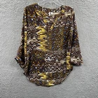 EST 1946 Cato Women Top Medium Brown Yellow Geometric 3/4 Sleeve Pullover Shirt Top is in good pre-owned condition. There are no issues noted. Please see photos for condition and measurements to ensure fit. Size: Medium Items are shipped out via USPS First Class, Priority Mail or UPS Ground with a tracking number for confirmation. Items ship same day/Next Day shipping so expect a quick delivery. Buy More & Save! Combined shipping for US customers - $1.99 for each additional item (Add items to shopping cart and discounts will automatically calculate during checkout) All of our measurements are approximate and provided in photos.