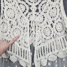 Embrace a whimsical, free-spirited aesthetic with this stunning mixed-media layering piece. The upper bodice features intricate cotton crochet with circular motifs and a delicate tie-front closure, while the lower half flows into a ethereal sheer mesh with ornate floral embroidery and a scalloped hem. This versatile vest adds a romantic, vintage-inspired touch to any outfit, perfect for festival season or elevating a simple camisole. This item is in good pre-owned condition with a small faint spot on the front crochet as pictured. Brand: EST. 1946 Type: Crochet Mesh Vest Size: 22/24W Color: Cream / Ivory Material: Cotton Blend / Nylon Style: Boho, Romantic, Ethereal Pattern: Floral, Geometric Crochet Closure: Tie Front Sleeve Length: Sleeveless Hem: Scalloped, Pointed Accents: Embroidery, Sheer Mesh Measurements: • Shoulder to Shoulder: 16" • Total Length: 32" Keywords: Bohemian, Festival, Cottagecore, Fairycore, Victorian, Shabby Chic, Layering, Plus Size, Romantic, Crochet, Embroidered, Ethereal, Whimsical