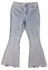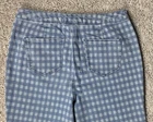 EST. 1946 Women's Denim Jeans Size: 10 Color: Blue Raw Hem Checkered pattern Flared leg Super High Rise 2 front pockets 2 back pockets Zip & button closure 54% Cotton, 26% Polyester, 19% Rayon, 1% Spandex Machine washable - see care instructions on listing images for more information Measurements are approximate and taken while laying down flat with no stretching Pre-owned very good condition. Minimal signs of normal wear. Raw hem. Please review photos and measurements on listing for details. Product color may slightly vary due to photographic lighting sources or your monitor settings. Tag: Y2K, retro, casual, western, travel, rodeo, cowgirl, boho, school, comfort, student, band, concert, rock, punk, grunge, distressed, trendy 24-0496
