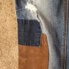 Add a touch of bohemian style to your wardrobe with these Est 1946 Denim Patchwork Distressed Jeans. The dark wash and distressed details give a unique and edgy look, perfect for the rockstar in you. The patchwork accents and straight fit make these jeans a must-have for any fashion-forward woman. Made with high-quality denim fabric, these jeans are both comfortable and durable. The size 10 regular fit is perfect for any woman looking for a statement piece. Get ready to turn heads with these Est 1946 Denim Patchwork Distressed Jeans.