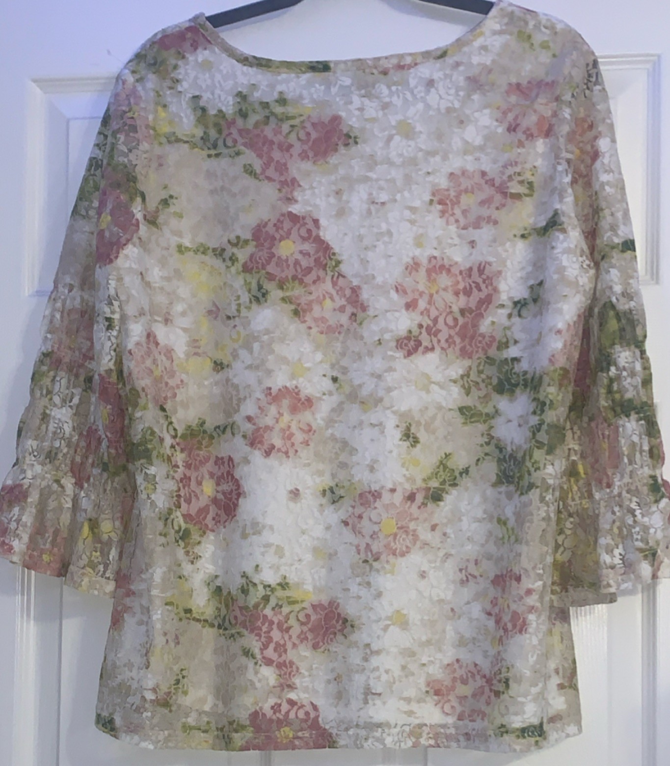EST. 1946 Multicolor Floral Lace Blouse, Lined, Pullover, 3/4 Sleeve, Women's L