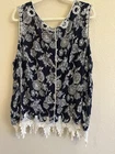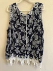 EST 1946 navy white floral crochet hem details 26/28W Boho Cruisewear Holiday Brunch Versatile Coastal B7-12-25-0259-09138