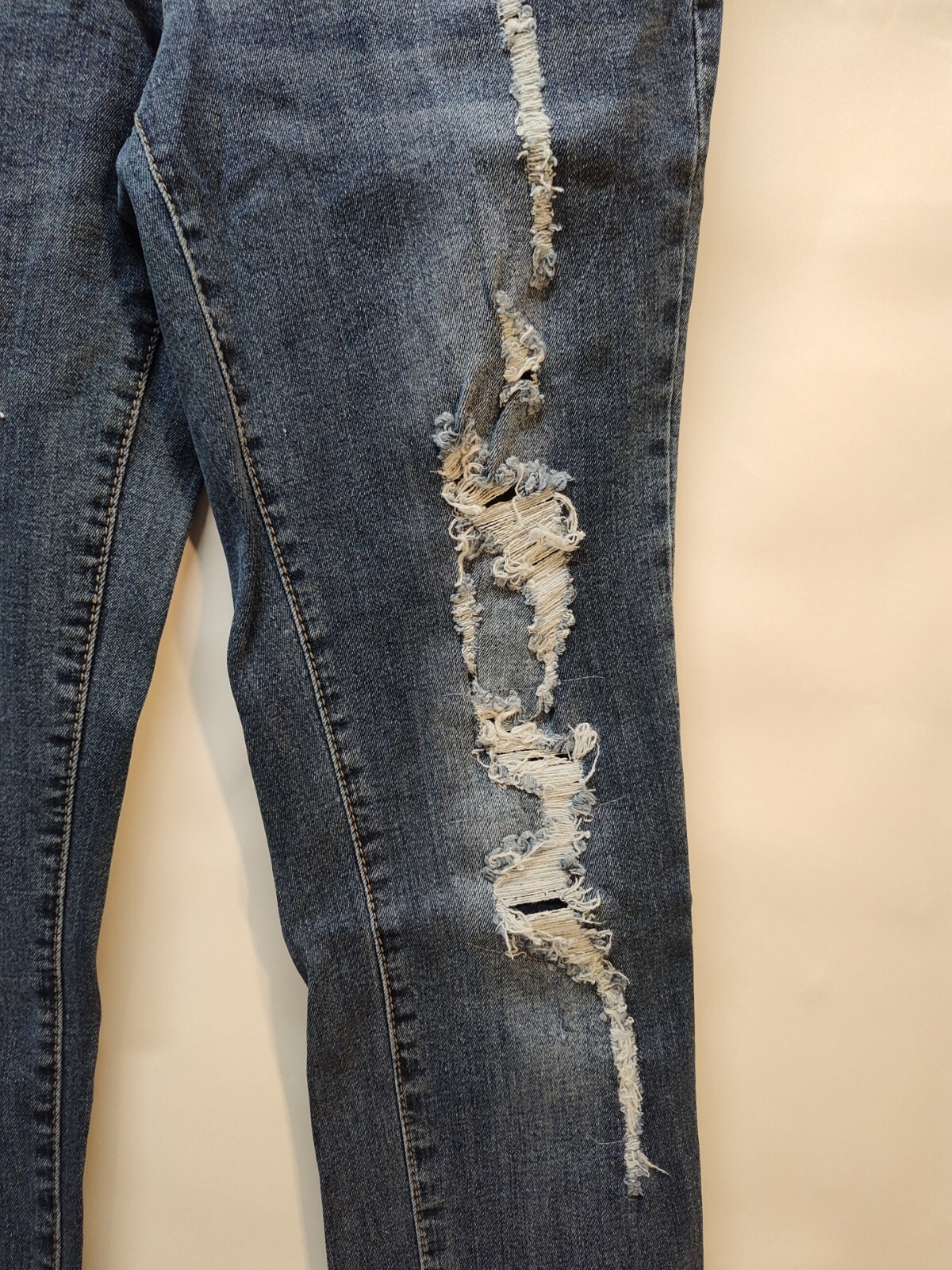 Rivet De Cru Size 31 Dark Denim Jeans Button Fly Distressed Whiskers