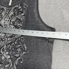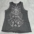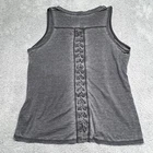 This gray tank top by C Est. 1 is perfect for casual or workwear occasions. The round neckline and pullover closure make it easy to wear, while the lace-up back adds a touch of detail. The geometric pattern and embroidered graphic give it a unique and artistic look. Made of comfortable cotton fabric, this sleeveless top is perfect for any season and can be machine washed for easy care. The XL size and regular fit make it suitable for most body types. This limited edition tank top is a must-have for any fashion-forward woman who wants to add a touch of grunge and retro style to her wardrobe.