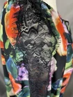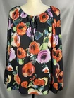 Very pretty and bold women’s long sleeve blouse from EST. 1946. Round neck line with a drawstring tie. The sleeves have black lace detail from the neckline to the cuff. The cuff has elastic which gives it a dressy look. Nice blouse for any occasion. Size XL, new without tags. 100% polyester Measures approximately 27 1/2”long, chest is 25” laying flat, sleeves are 23” Ships USPS K8