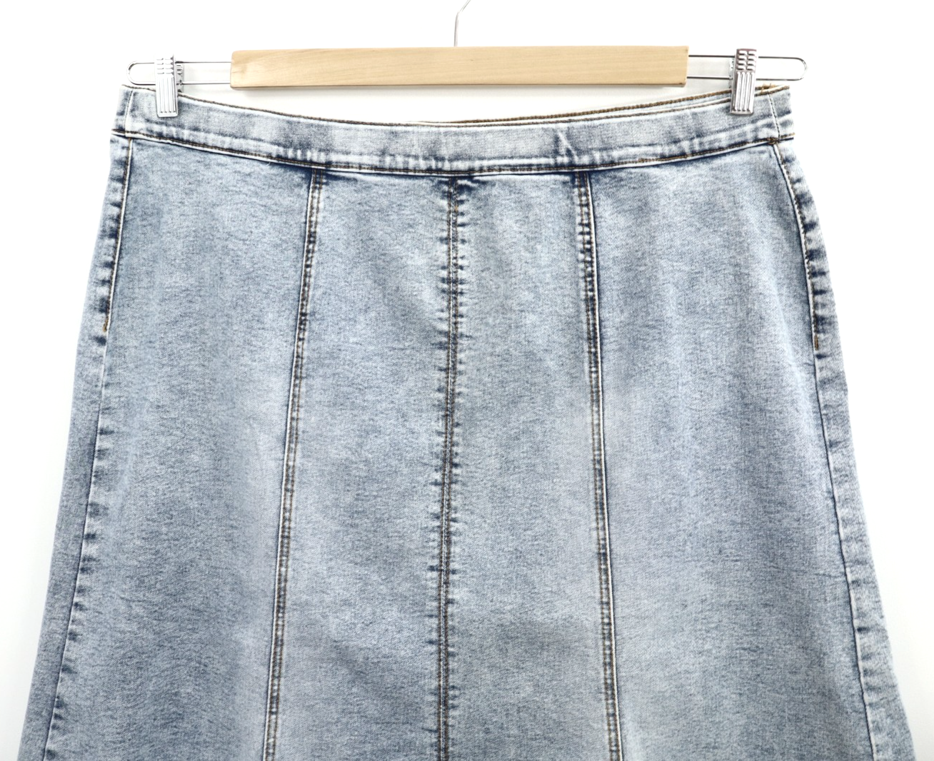 EST 1946 Women's Cotton Denim Paneled A-Line Skirt Light Jean Blue Size 20W PLUS · Color (in random order): light jean blue · Pull on closure · Elastic waist · Solid pattern · NO bottom side slit · NO pockets · Midi length · Paneled · Heavyweight and stretch cotton polyester rayon spandex denim jean fabric, single layer · See photos for actual measurements and net weight (without packaging, a less than 2oz if packaging weight will be added) HANDLING TIME o We ship 5 days a week and we usually ship within 1 business days of receiving payment o During seller time away, handing time will be extended CALCULATING SHIPPING FEE o You shipping fee is calculated automatically on eBay based on its actual weight and the method of shipment. We ship most domestic items via US Postal Service o We use eBay Global Shipping Program for all international orders o Import duties, taxes and charges are not included in the item price or shipping charges. These charges are the buyer's responsibility. Please check with your customs office to determine what these additional costs will be prior to bidding / buying COMBIMED SHIPPING o We do combine shipping, please email us when you are ready to checkout, eBay software does not combine shipping automatically o For US domestic customers: the item with the highest shipping cost has no discount, any additional item(s) receive 50% shipping discount o For international customers: please contact us for combined shipping quote RETURN POLICY o You have 30 days to return the item in the condition it was received o Please process any returns through (https://pages.ebay.com/help/buy/return-item.html). Once the return request is initialed, you will need to print out a return shipping label through the request o Enclose a short note stating your eBay buyer ID, the item number(s) you are returning, and reason for return o We will process your refund exactly the way we received your payment. This will occur within 2 business days of the arrival of your return. o Buyer pays return shipping